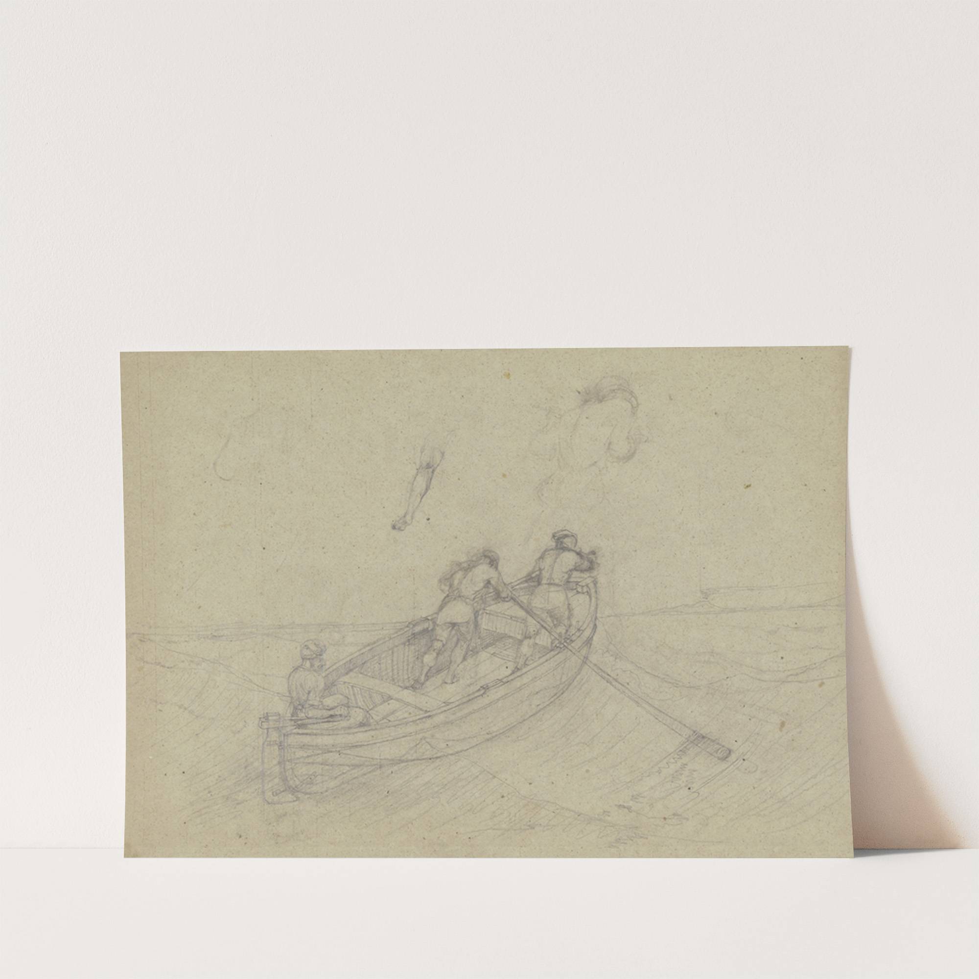 Boot bei Capri mit drei Fischern bemannt by Carl Morgenstern - Wall Art Print