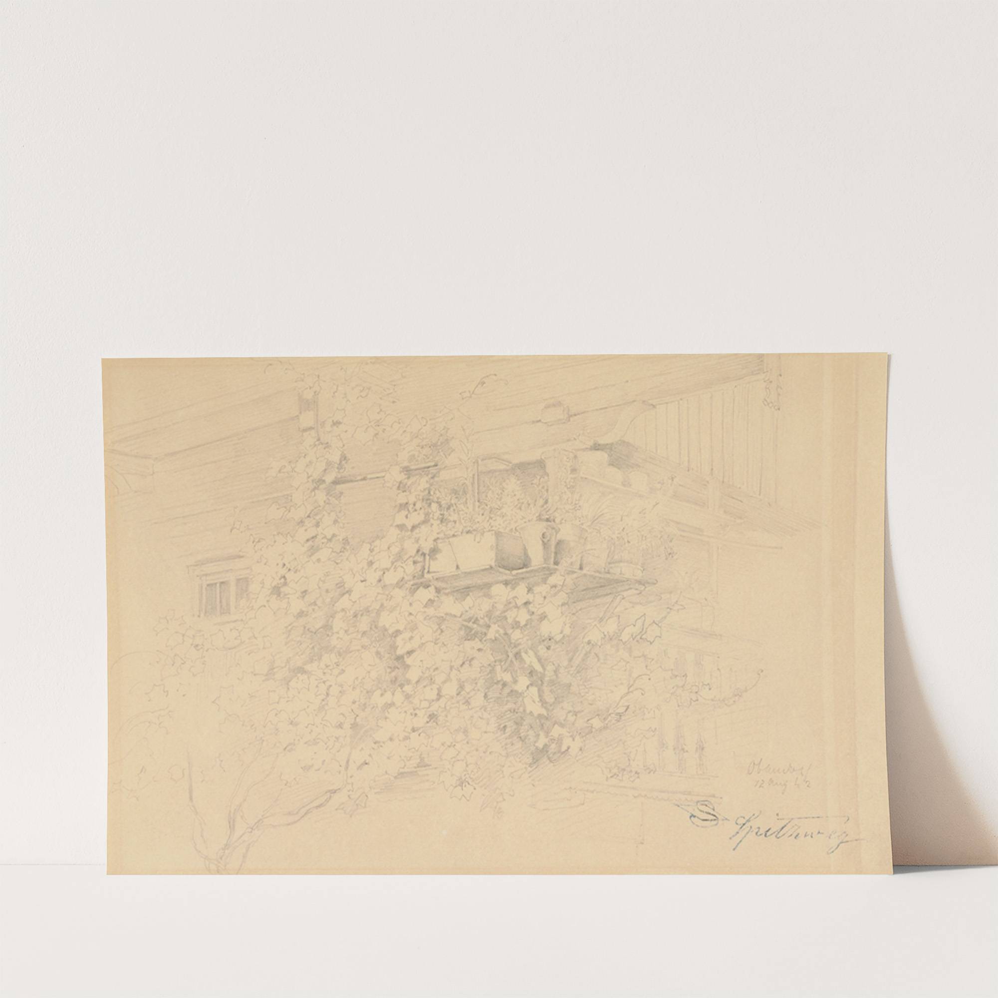 Ecke eines Bauernhauses mit rankendem Weinlaub und Blumentöpfen (1842) by Carl Spitzweg - Wall Art Print
