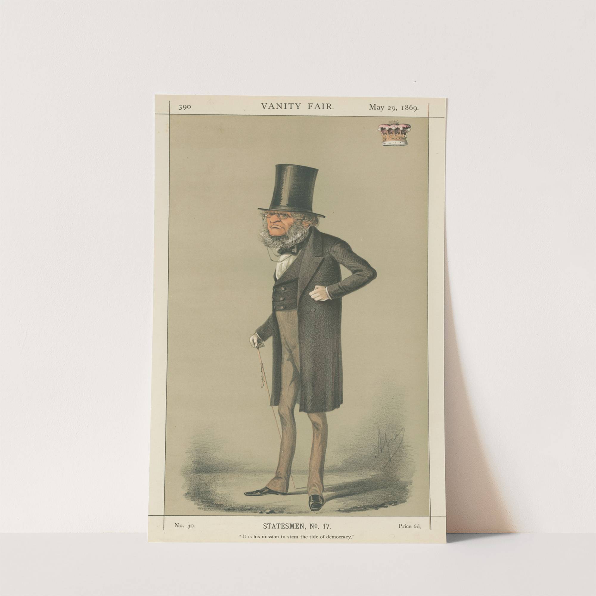 Prime Ministers – ‘It is his mission to stem the tide of democracy.’ The Earl of Derby. 29 May 1869 by Carlo Pellegrini  - Wall Art Print