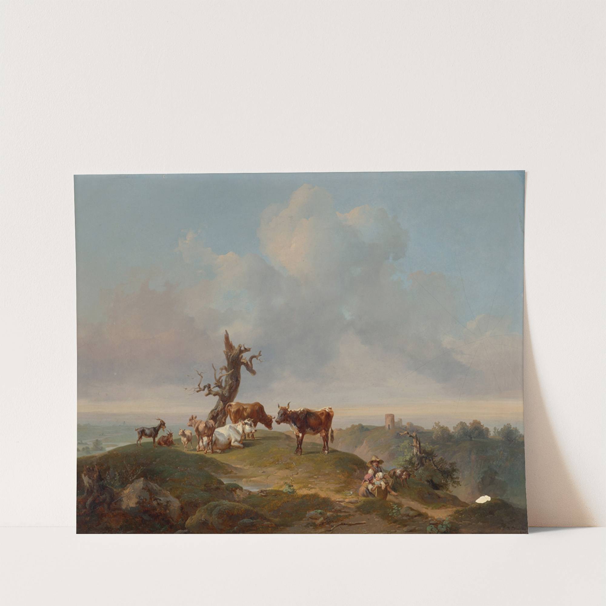 Kühe und Ziegen auf der Weide by Joseph Heicke - Wall Art Print