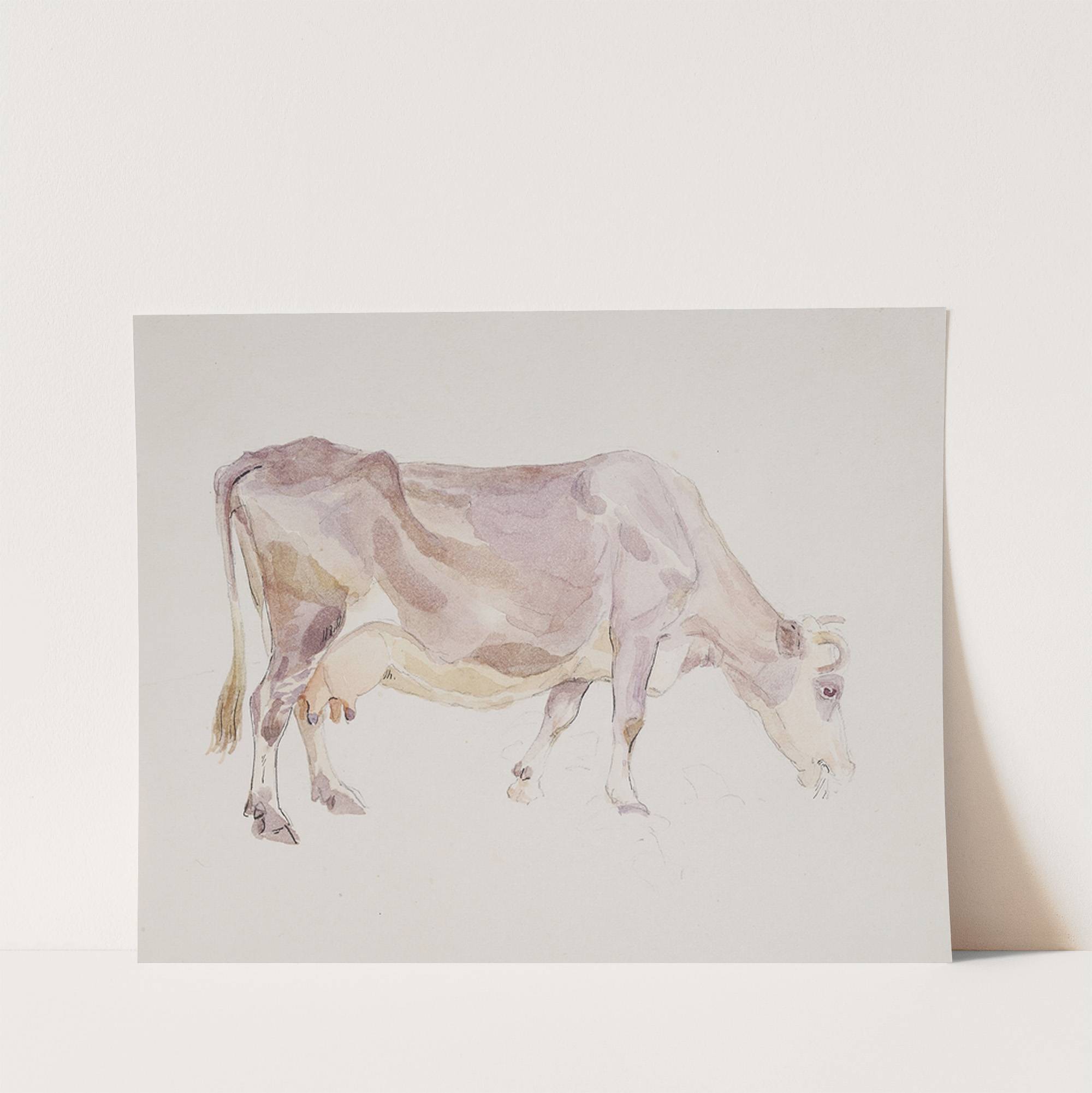"St?ende ko" is a delicate watercolor painting of a cow by artist Agnes Lunn. This piece captures the essence of pastoral simplicity with soft, flowing brushstrokes that blend subtly into each other to create a gentle, almost ethereal depiction of...