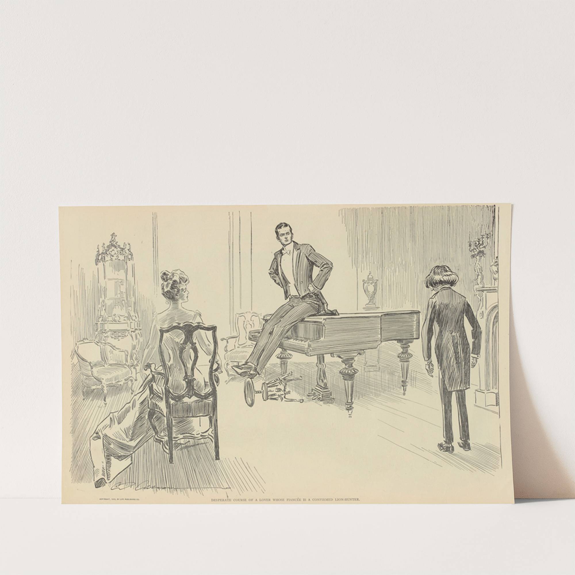 Desperate course of a lover whose fiancee is a confirmed lion-hunter by Charles Dana Gibson - Wall Art Print