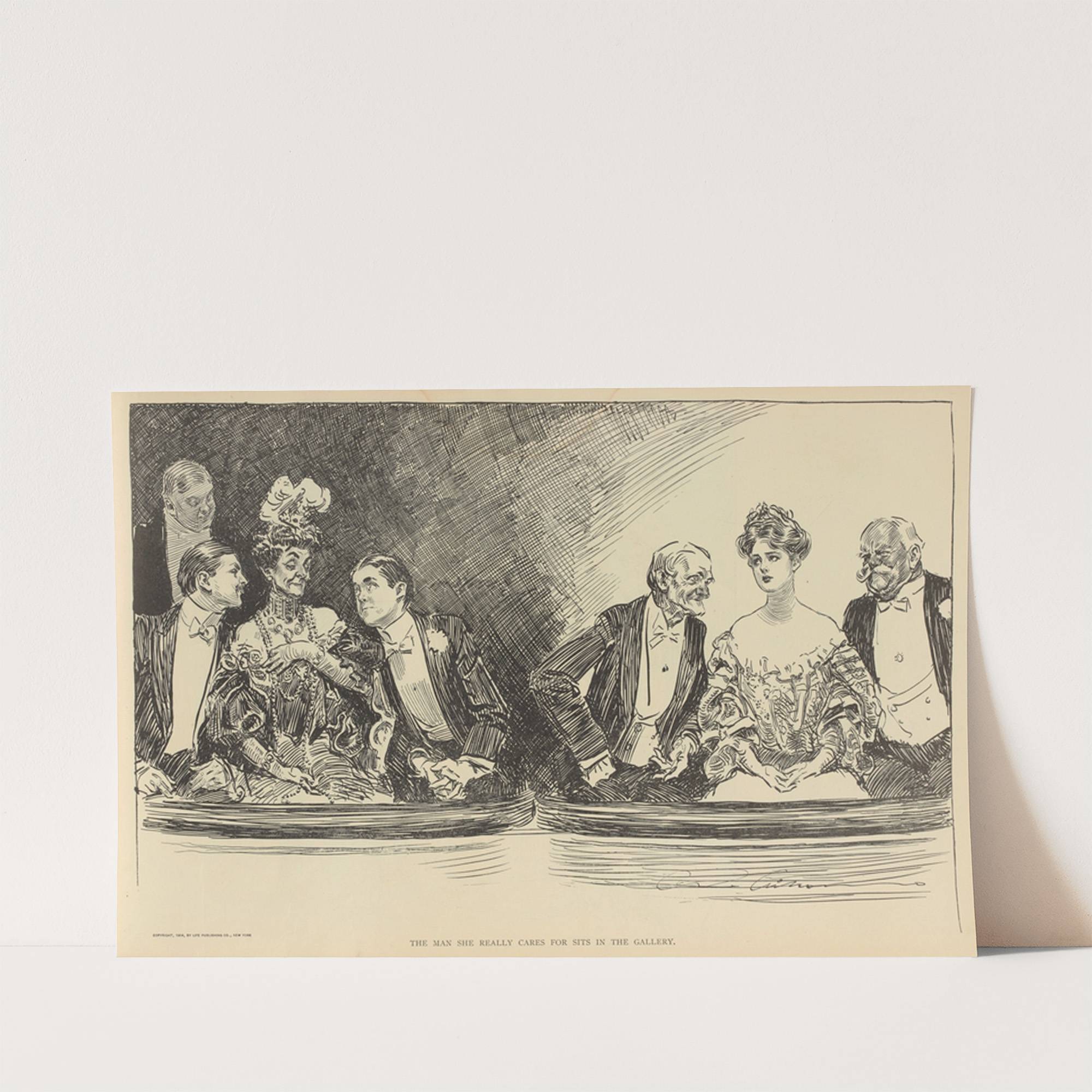 The man she really cares for sits in the gallery by Charles Dana Gibson - Wall Art Print