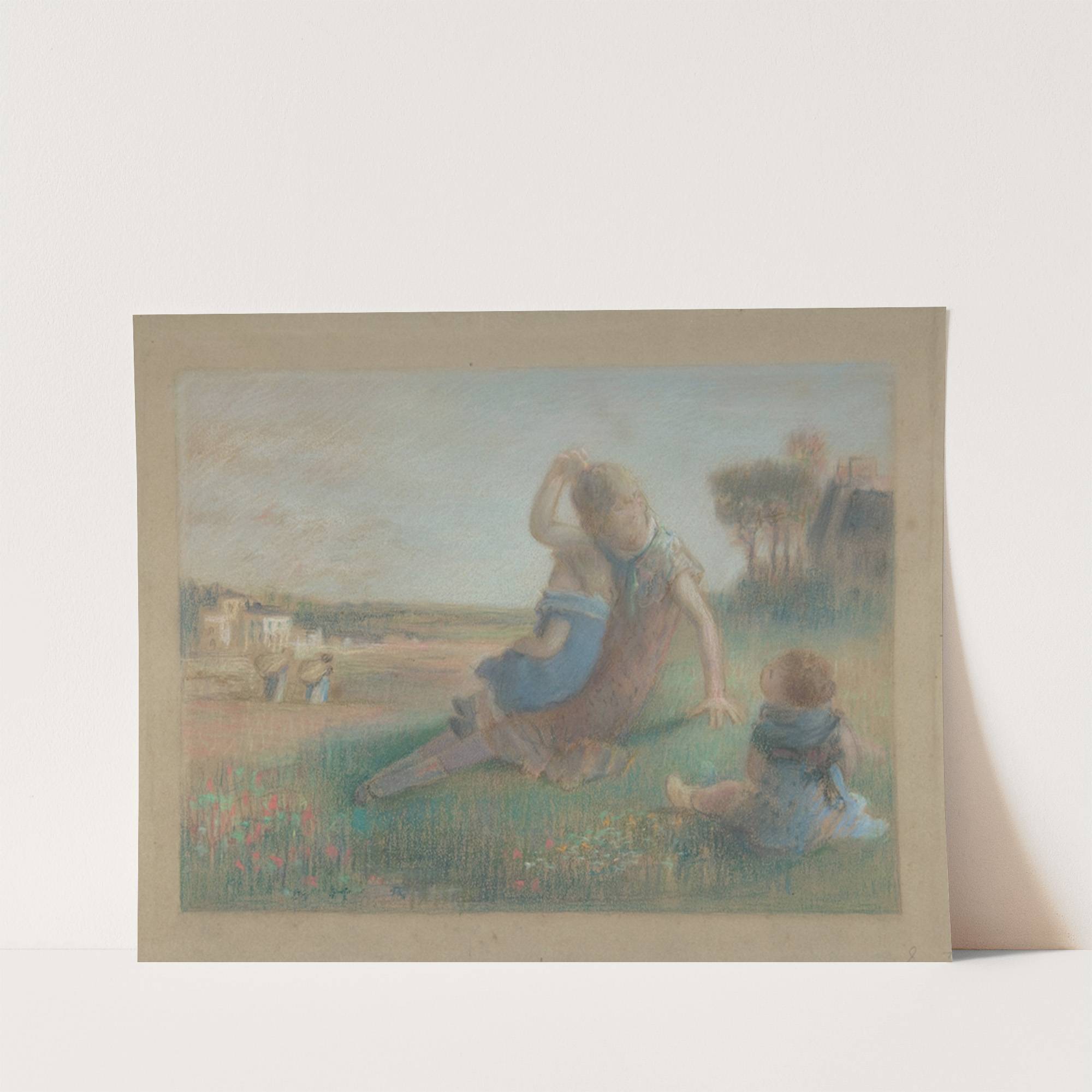 Three Children in a Landscape by Charles-Emmanuel Serret - Wall Art Print