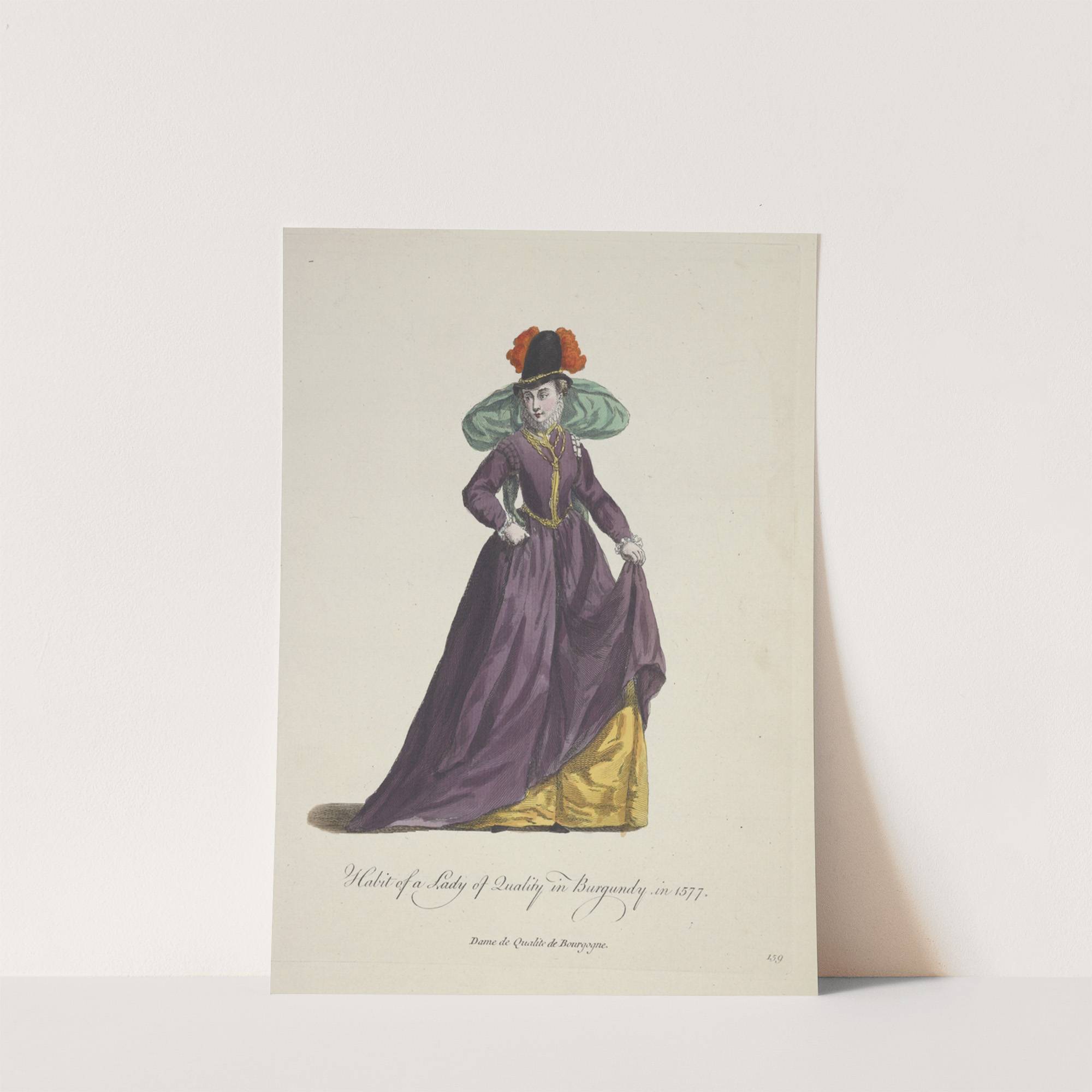 Habit of a lady of quality in Burgundy in 1577. Dame de qualite de Bourgogne. (1757-1772) by Charles Grignion - Wall Art Print