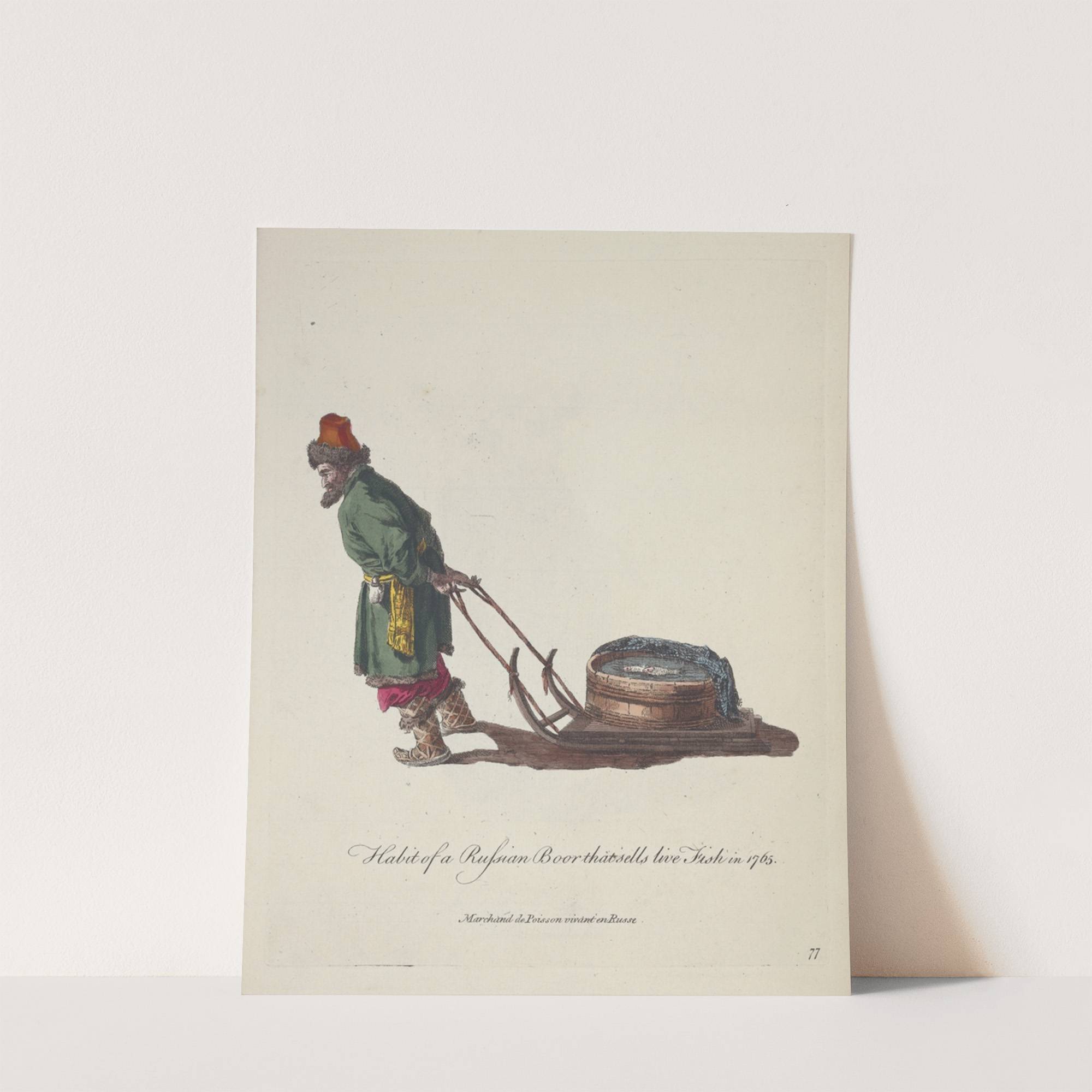 Habit of a Russian boor that sells live fish in 1765. Marchand de poisson vivant en Russe. (1757-1772) by Charles Grignion - Wall Art Print