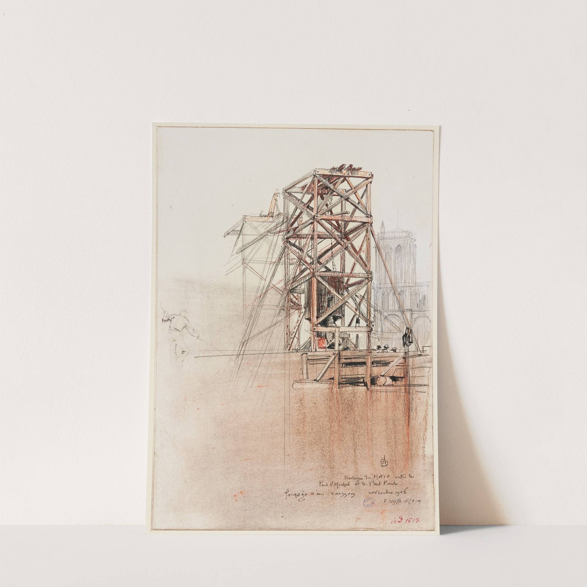 Travaux du métro entre le pont Saint Michel et le Petit Pont, 1906 fonçage d’un caisson (1906) by Charles Jouas - Wall Art Print