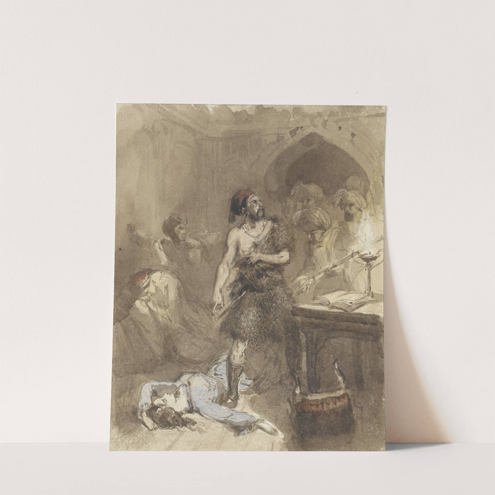 Man en op de grond liggende vrouw in een Moors vertrek by Charles Rochussen - Wall Art Print