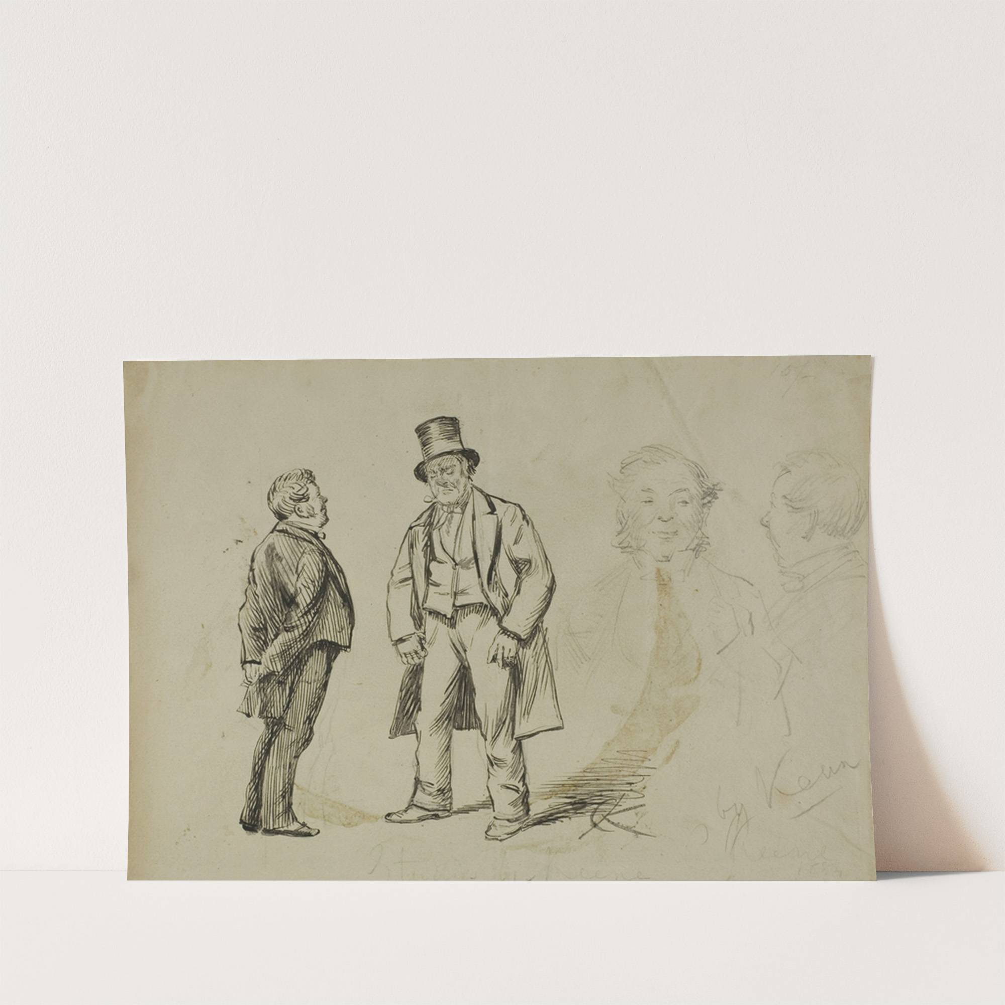 Sketch of Two Standing Men and Two Portaits by Charles Samuel Keene - Wall Art Print
