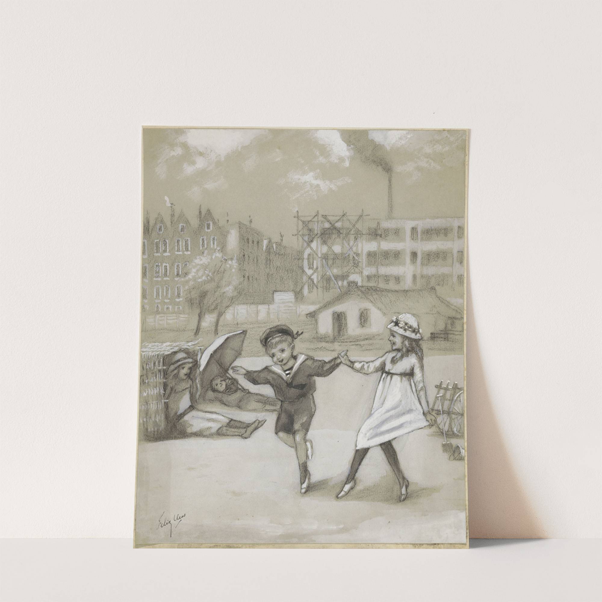 Dansende jongen en meisje in een stadspark of speeltuin by Felix Hess - Wall Art Print