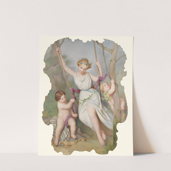 Girl On A Swing With Two Children by Continental School - Wall Art Print
