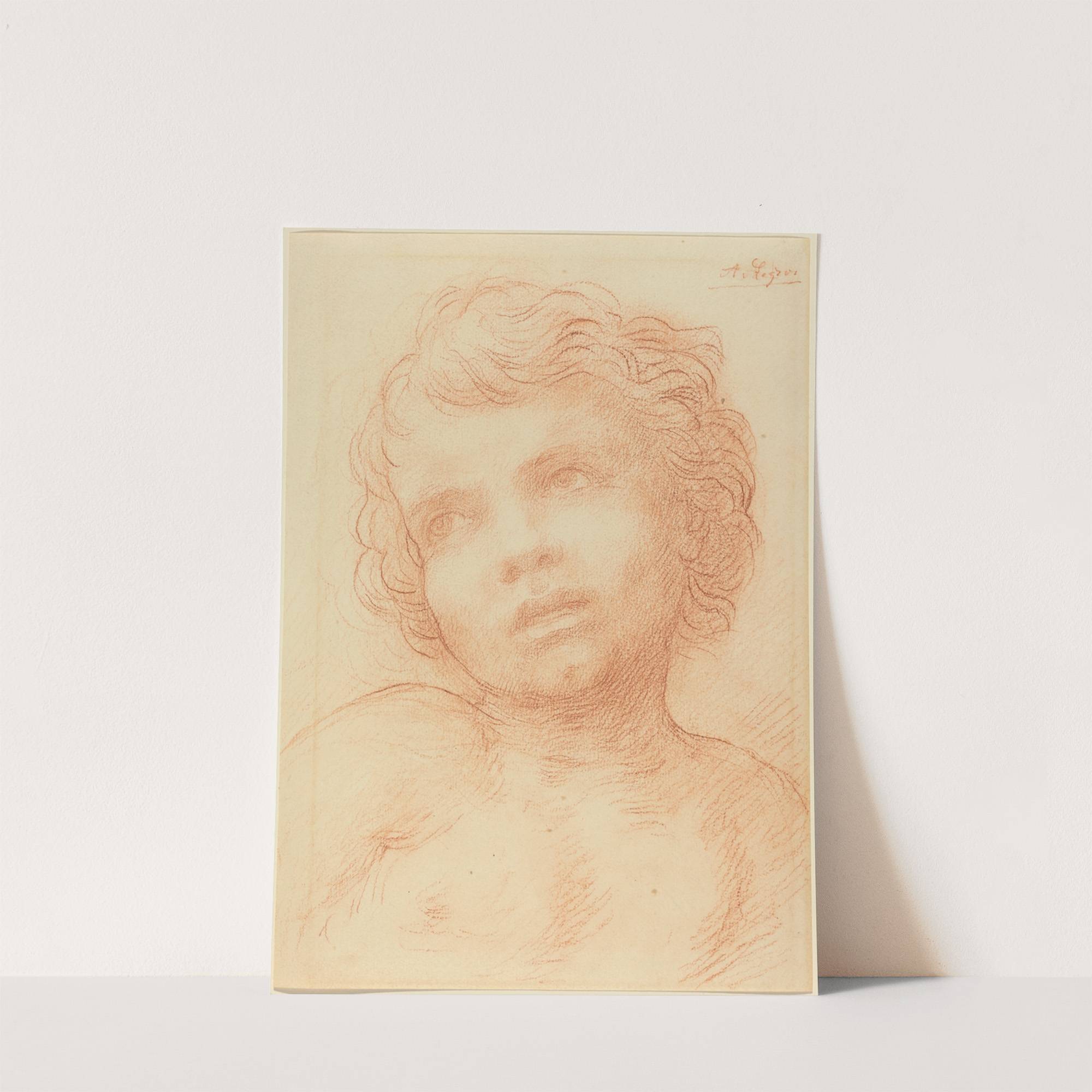 This art print features "Head of a Child II" by Alphonse Legros, a masterful pencil sketch rendered in soft, warm sepia tones. The child’s gentle yet expressive face is the focal point, with delicate lines tracing the contours and texture...