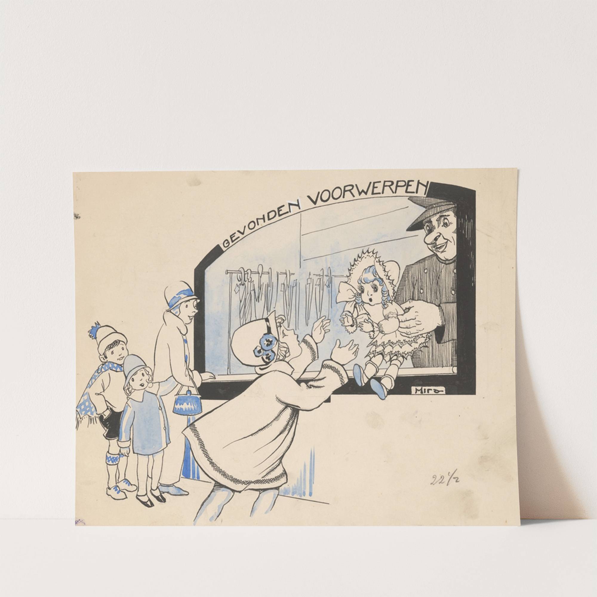 Meisje haalt pop op bij loket Gevonden Voorwerpen by Mira - Wall Art Print
