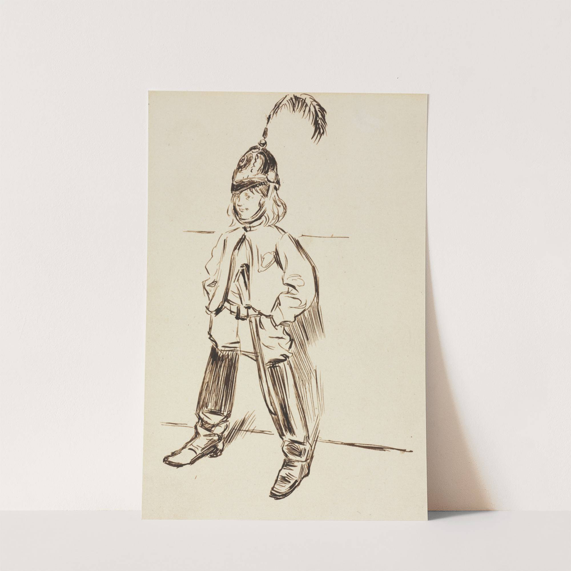 Study of a Child in Helmet and Boots by Charles Samuel Keene - Wall Art Print