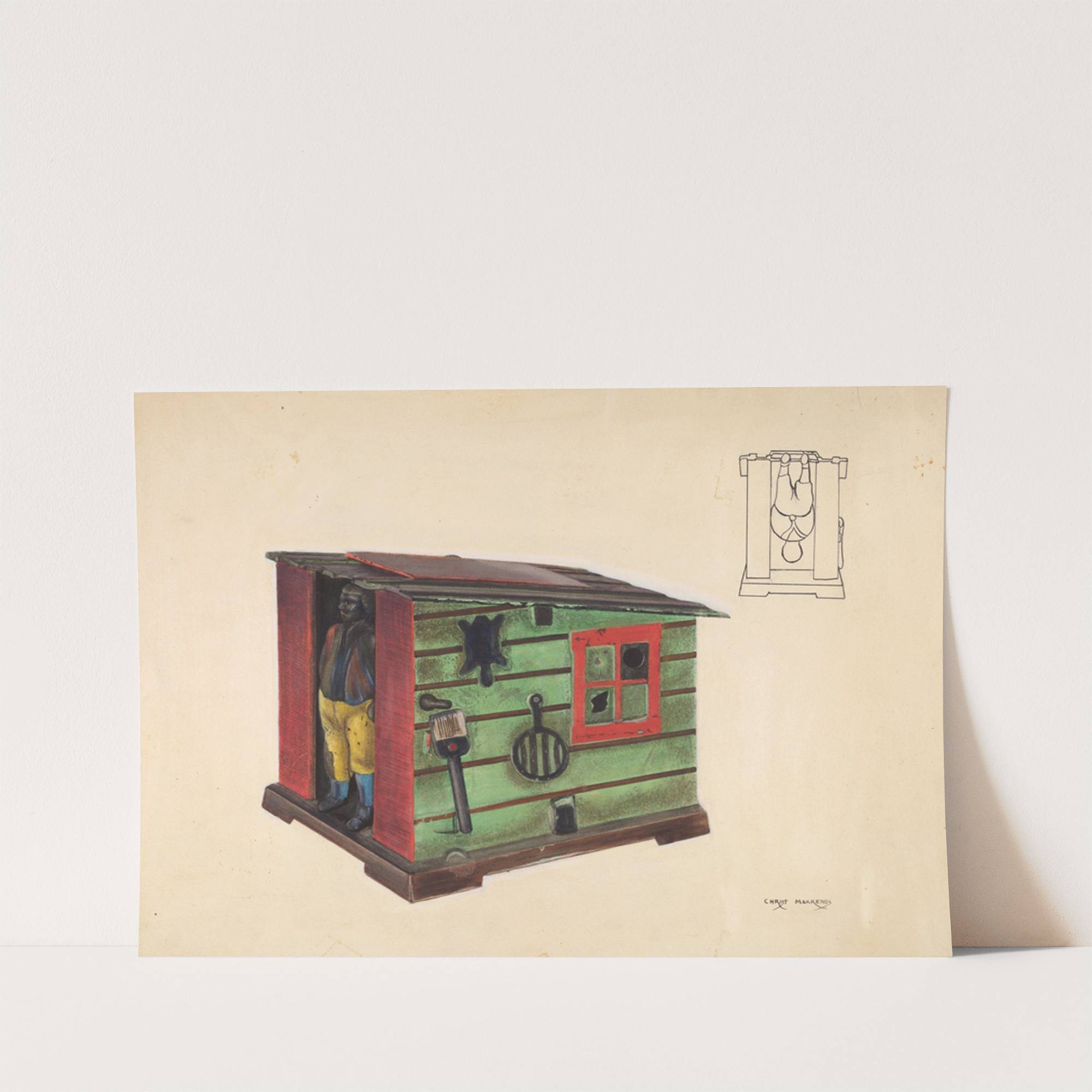 Toy bank – Man in a Cabin by Chris Makrenos - Wall Art Print