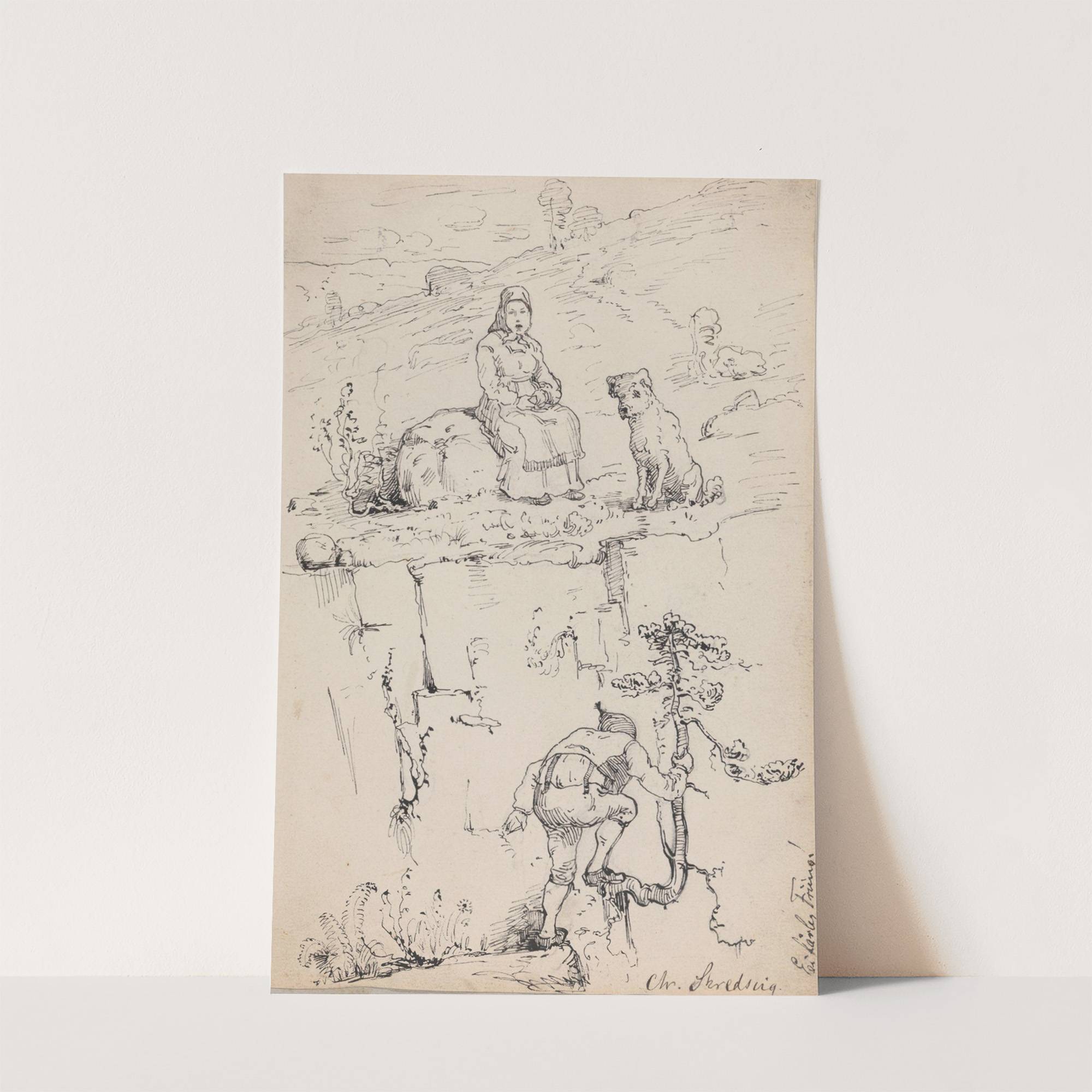 Jente, hund og klatrende gutt by Christian Skredsvig - Wall Art Print