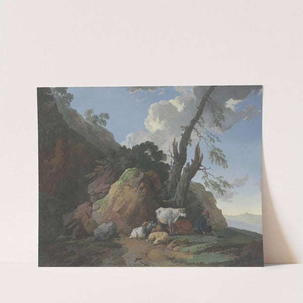 Felsige Gegend mit einem Hirten, zwei Kühen, zwei Schafen und einer Ziege by Christian Wilhelm Ernst Dietrich - Wall Art Print