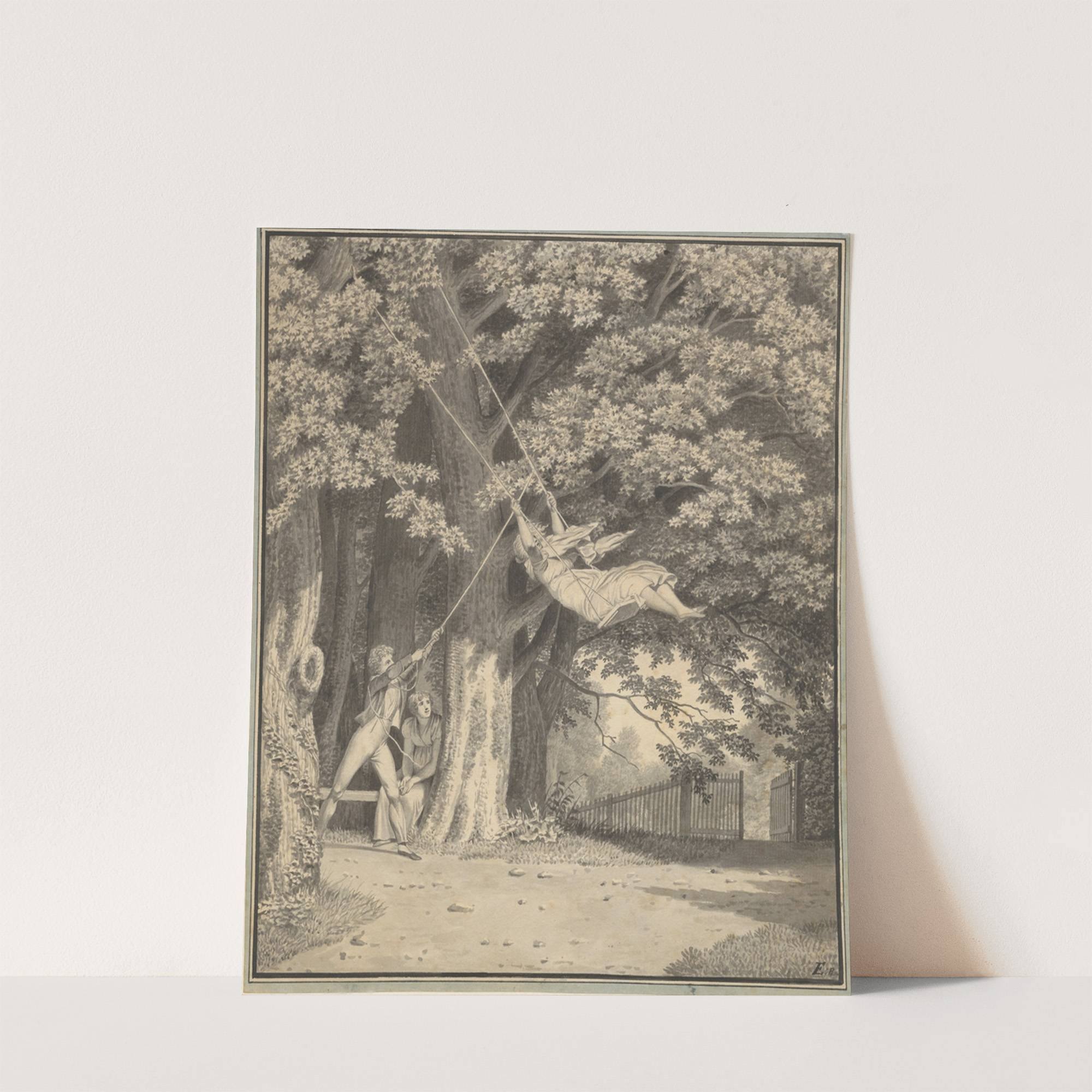 Skovparti ved Skjoldnæsholm med en ung mand, der gynger en ung pige by Christoffer Wilhelm Eckersberg - Wall Art Print
