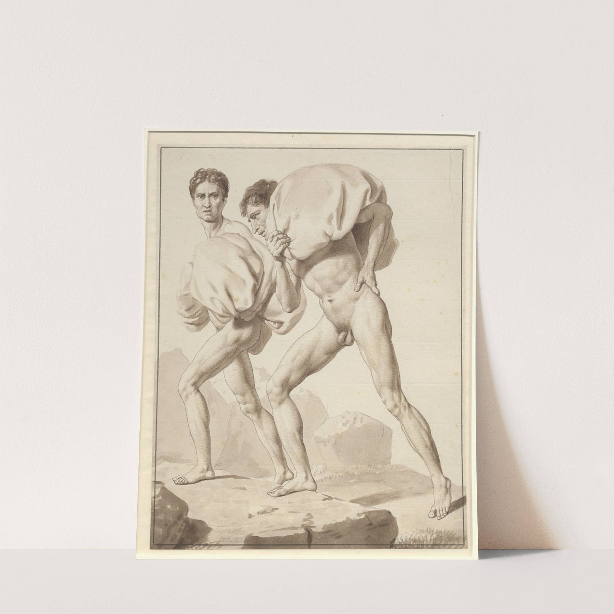Studie af to nøgne mænd, belæssede med byrder, på vej op ad et bjerg by Christoffer Wilhelm Eckersberg - Wall Art Print