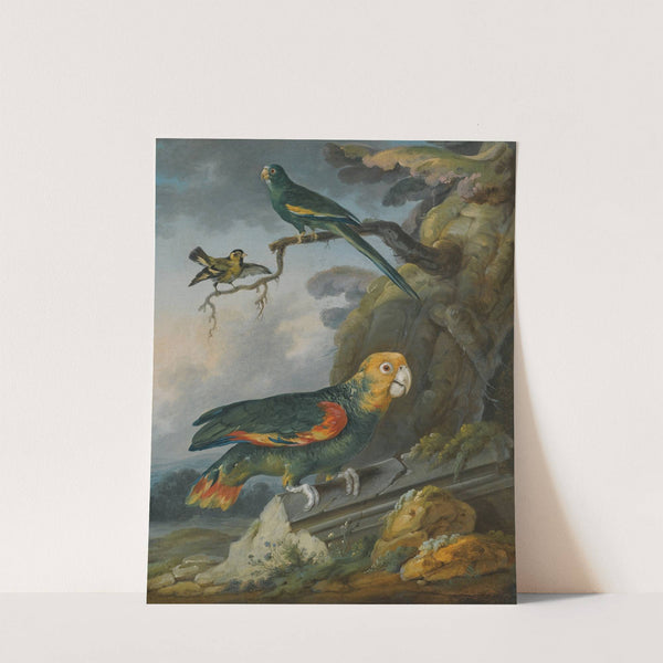 A Parrot, A Perroquet And A Gold Finch At The Base Of A Tree by Christophe Huet - Wall Art Print
