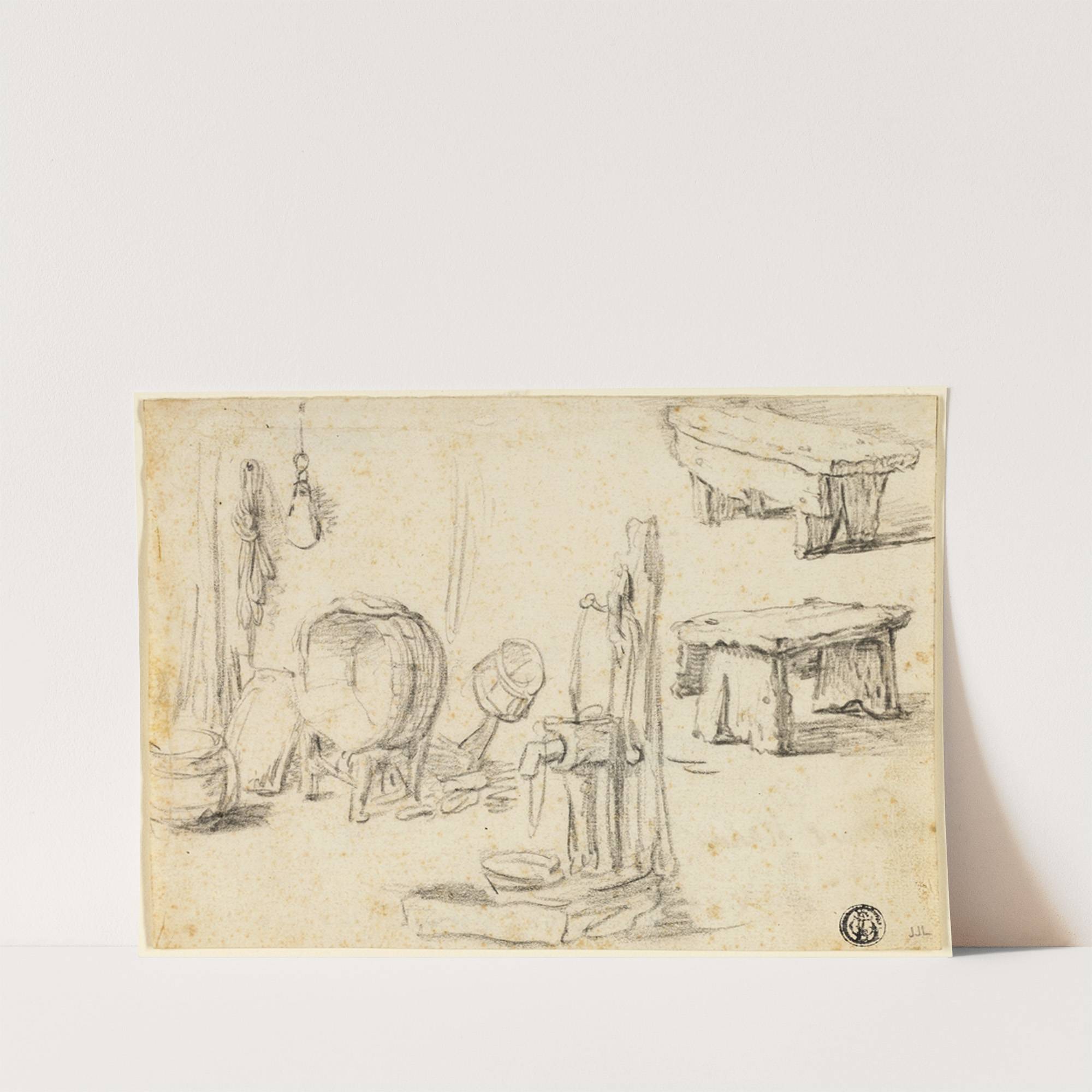 Sketches of Pump, Washtub, Benches by Circle of Adriaen van Ostade - Wall Art Print