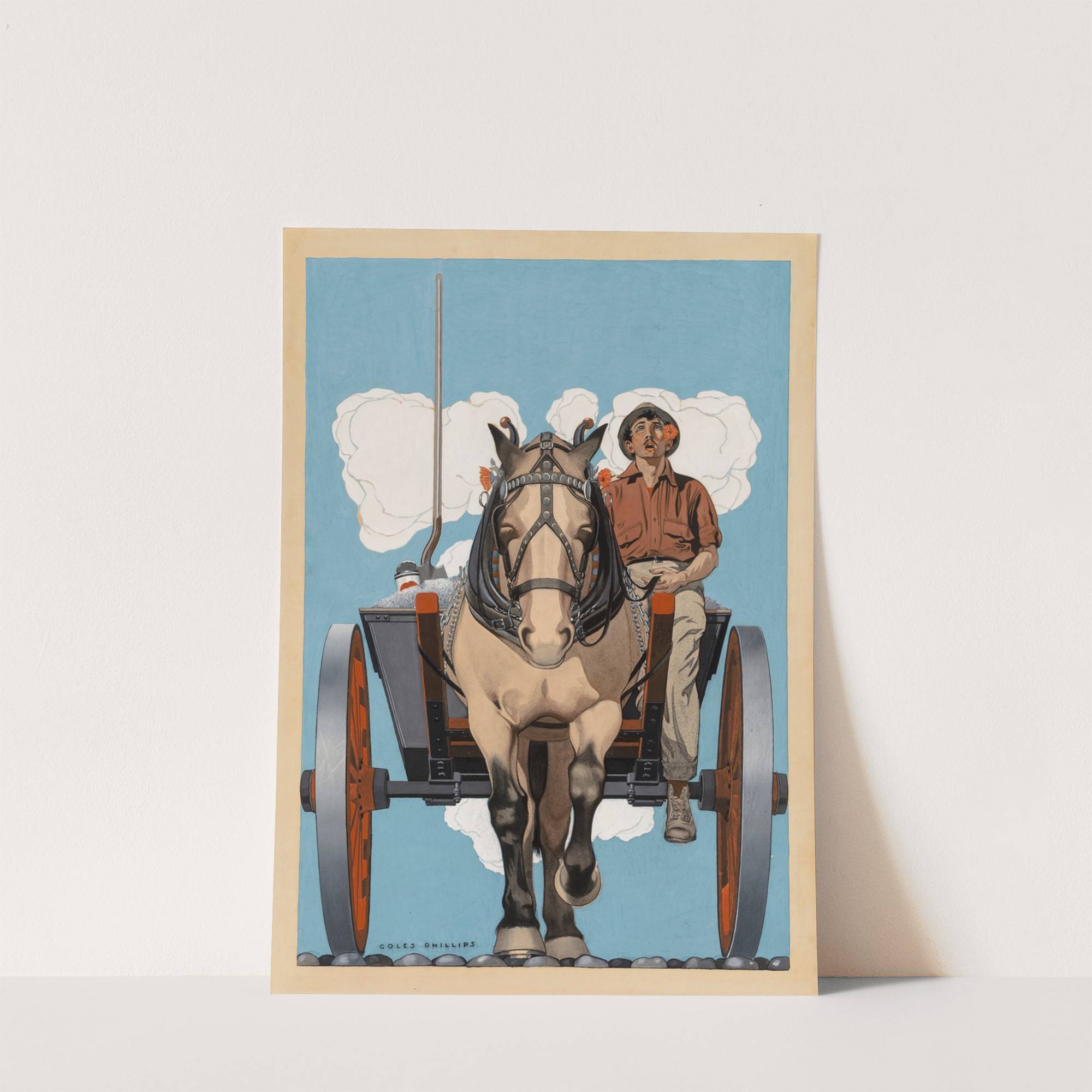 Man riding a horse drawn cart by Coles Phillips - Wall Art Print