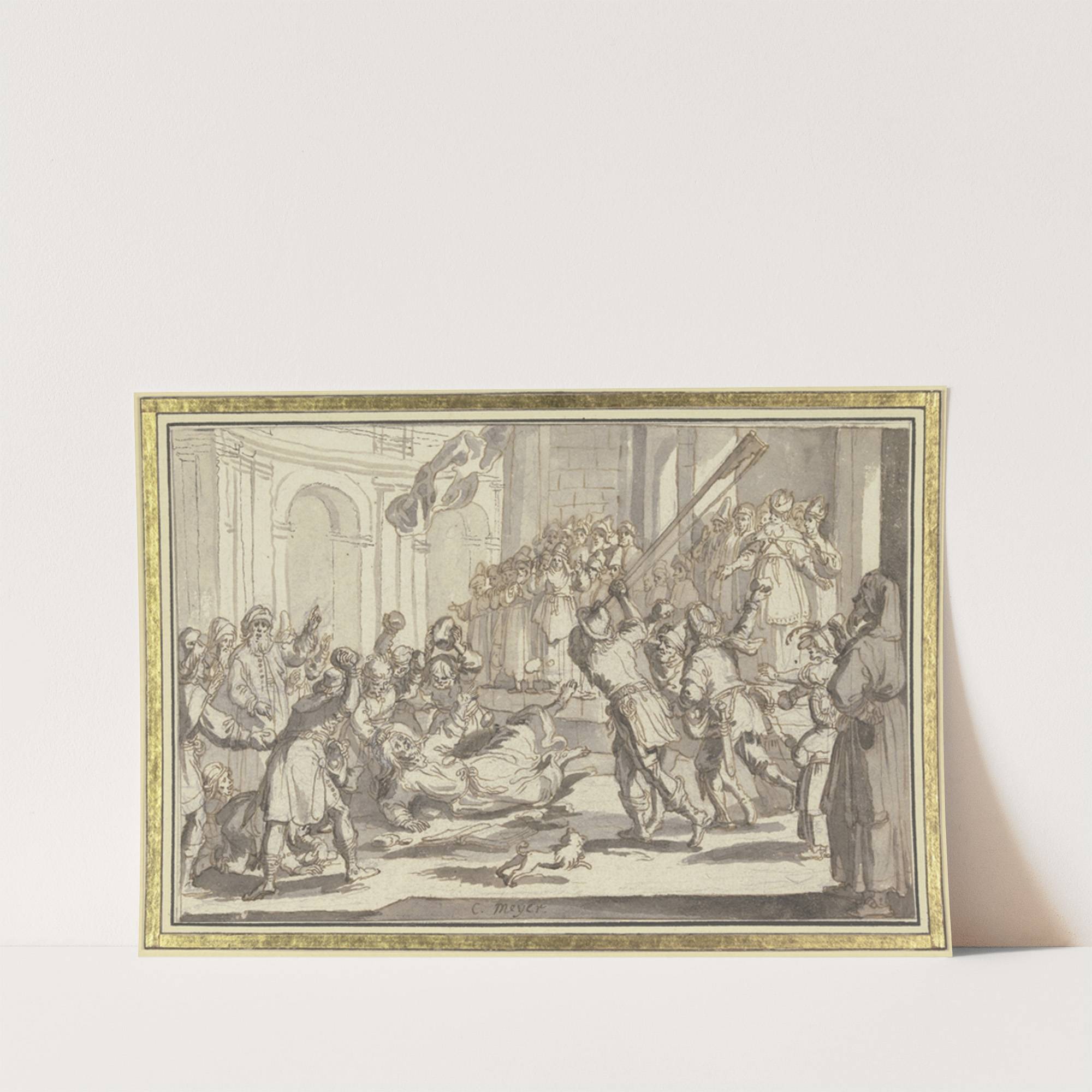 Martyrium des heiligen Jacobus des Jüngeren; Der Heilige wird von einer Volksmenge gesteinigt und mit dem Walkerholz erschlagen by Conrad Meyer - Wall Art Print