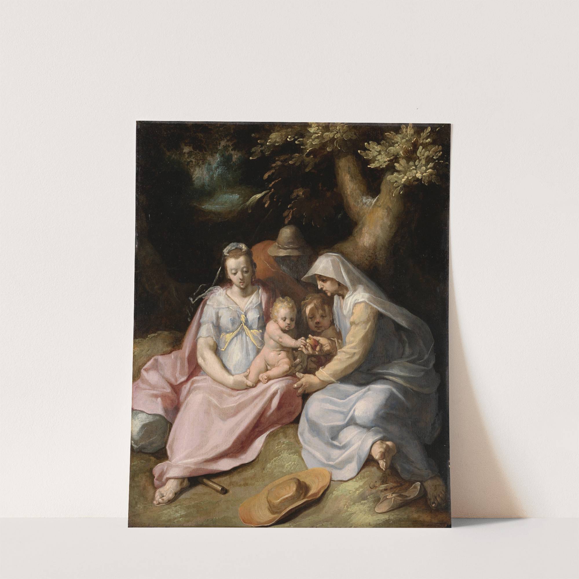 Taufe Christi; Die Heilige Familie mit der Heiligen Elisabeth und dem Johannesknaben im Walde by Cornelis Cornelisz Van Haarlem - Wall Art Print