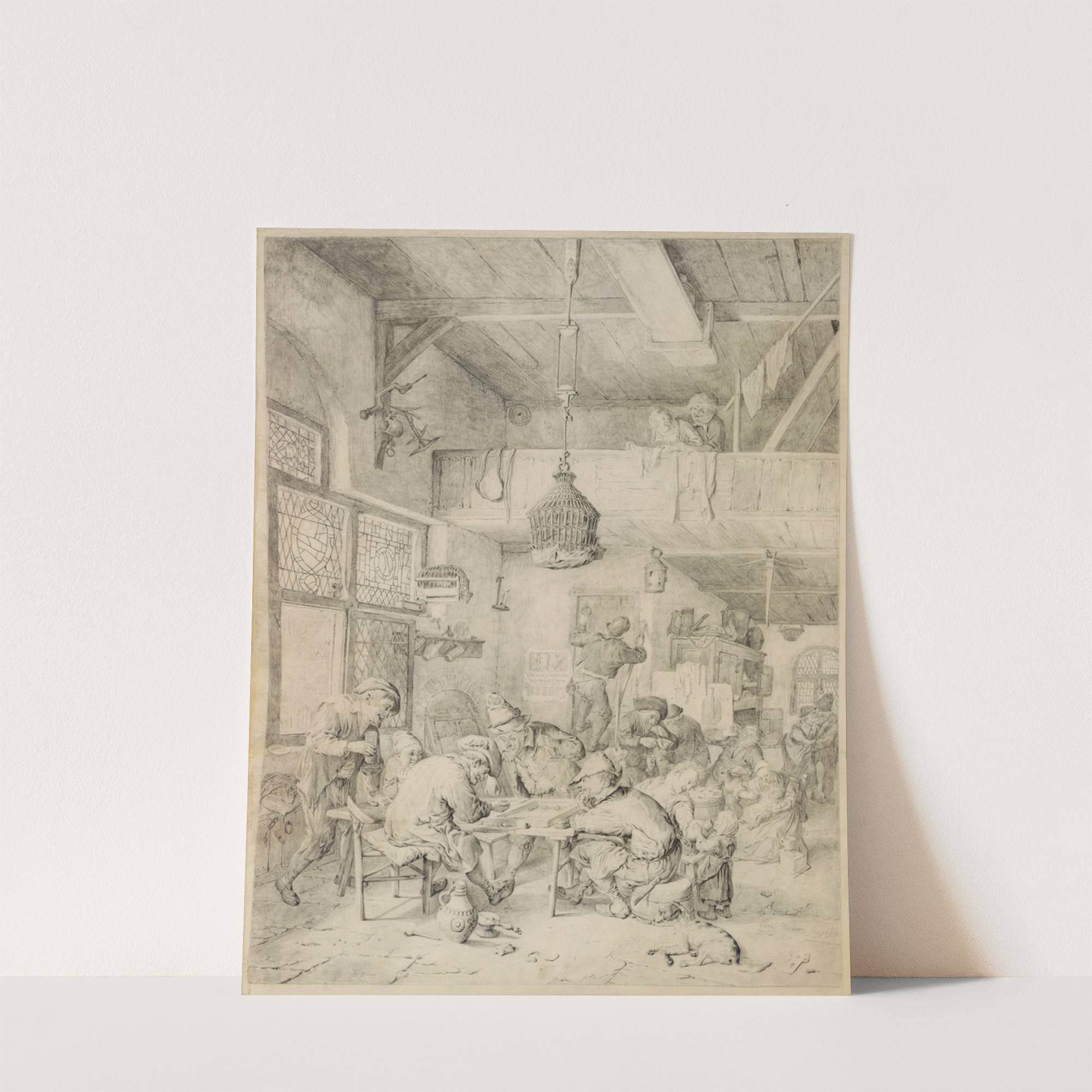 Peasants Playing Backgammon and Merry-making in a Tavern by Cornelis Dusart - Wall Art Print