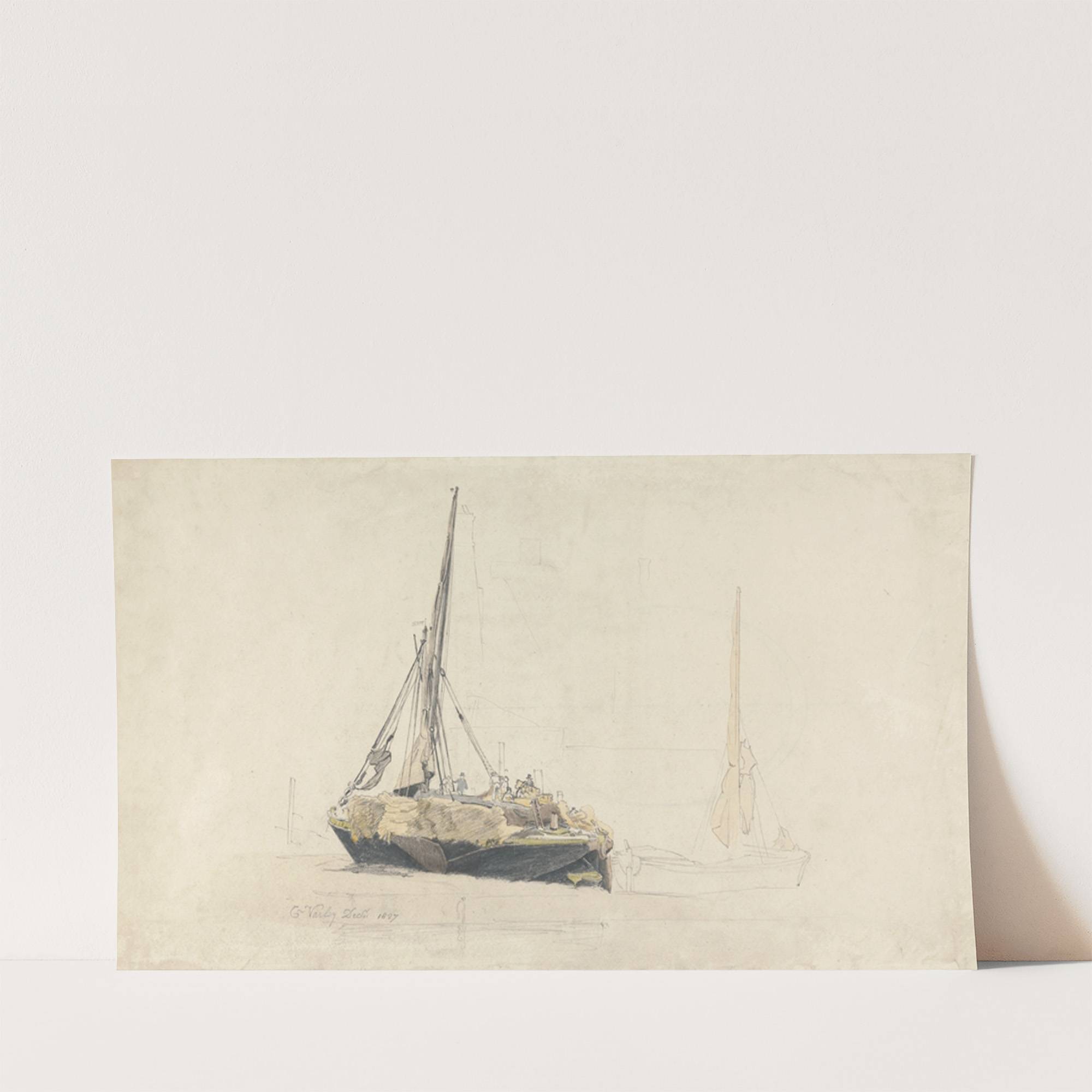 A Sailing Barge being loaded with Hay (1827) by Cornelius Varley - Wall Art Print