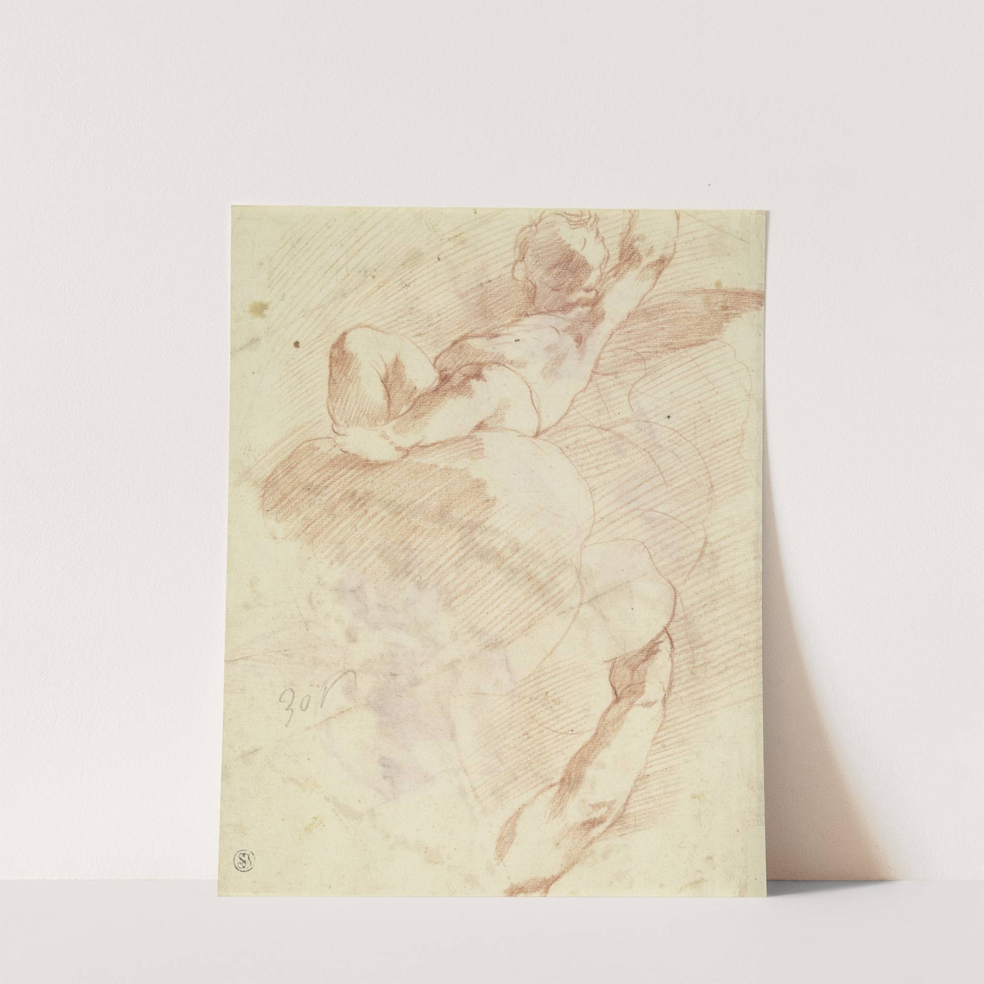 Auf einer Wolke sitzender Putto in Untersicht by Correggio - Wall Art Print