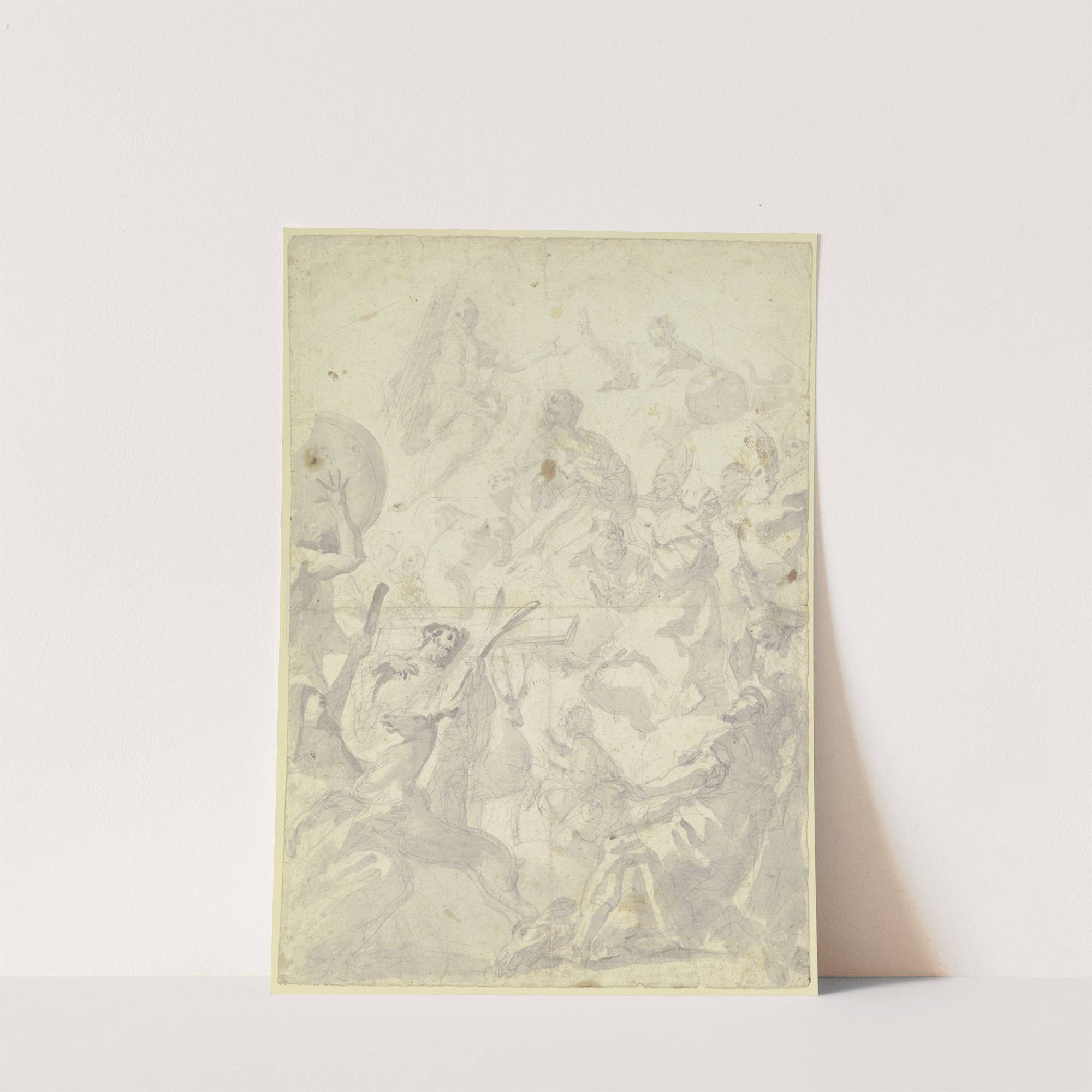 Entwurf zu einem Hubertusaltar by Cosmas Damian Asam - Wall Art Print