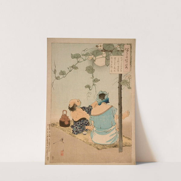 A Couple Enjoying the Flowering Evening Face Arbor by Tsukioka Yoshitoshi - Wall Art Print