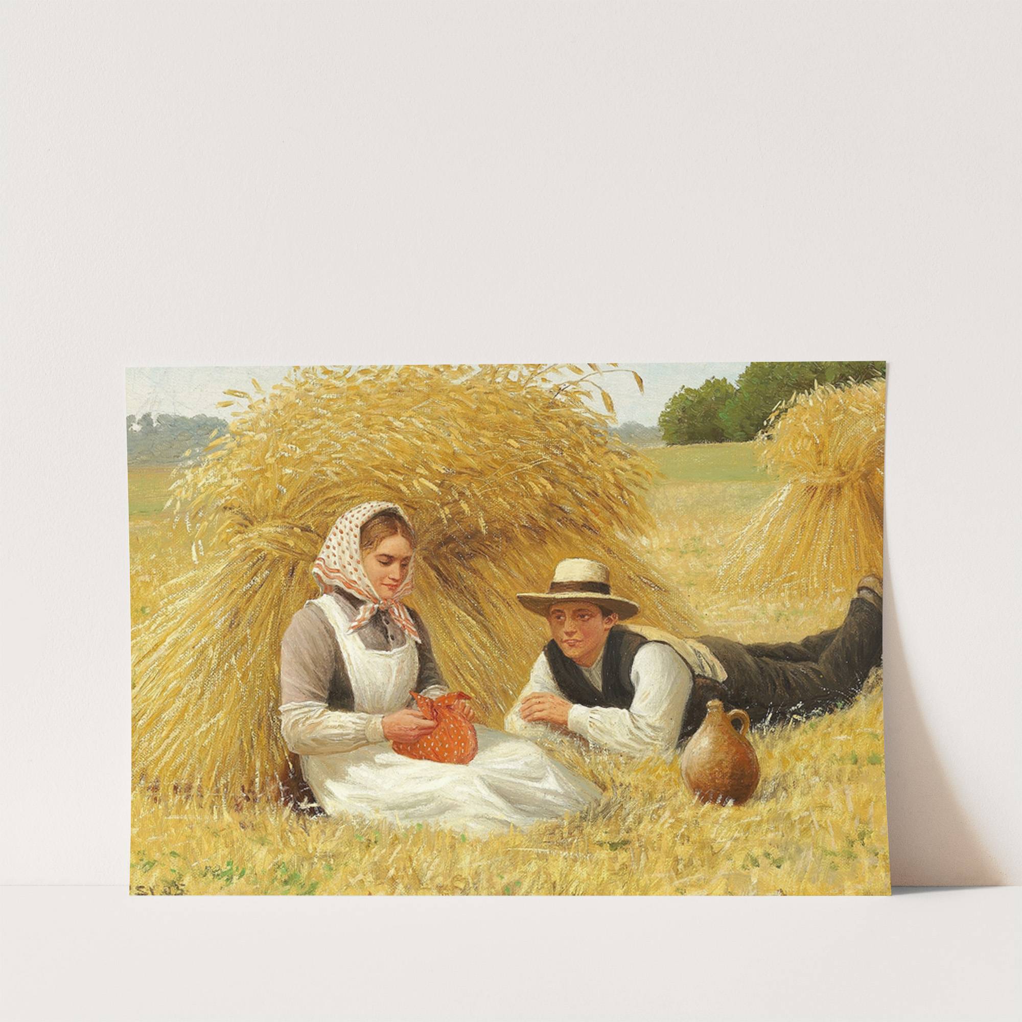 En ung knøs i færd med at opvarte en tjenestepige i høsttiden by Poul Steffensen - Wall Art Print