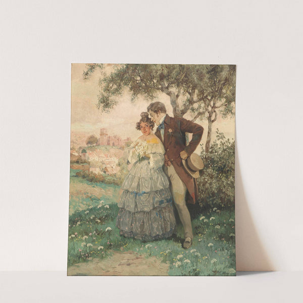 Kærestepar under træet. I baggrunden byen Dürnstein by Rudolf Alfred Höger - Wall Art Print