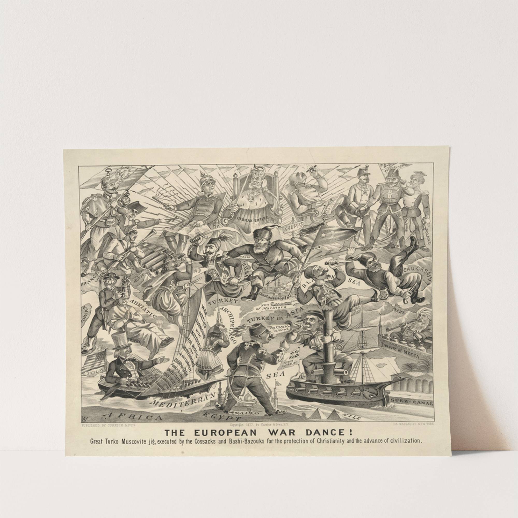 The European War Dance! Great Turko Muscovite Jig, executed by the Cossacks and Bashi-Bazouks for the protection of christianity and the advance of civilization (1877) by Currier & Ives. - Wall Art Print