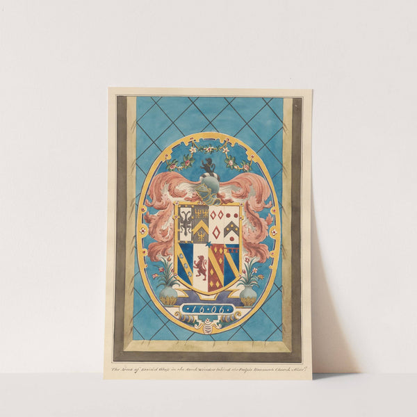 Coat of Arms in Stained Glass Window behind the Pulpit form Hanworth Church by Daniel Lysons - Wall Art Print