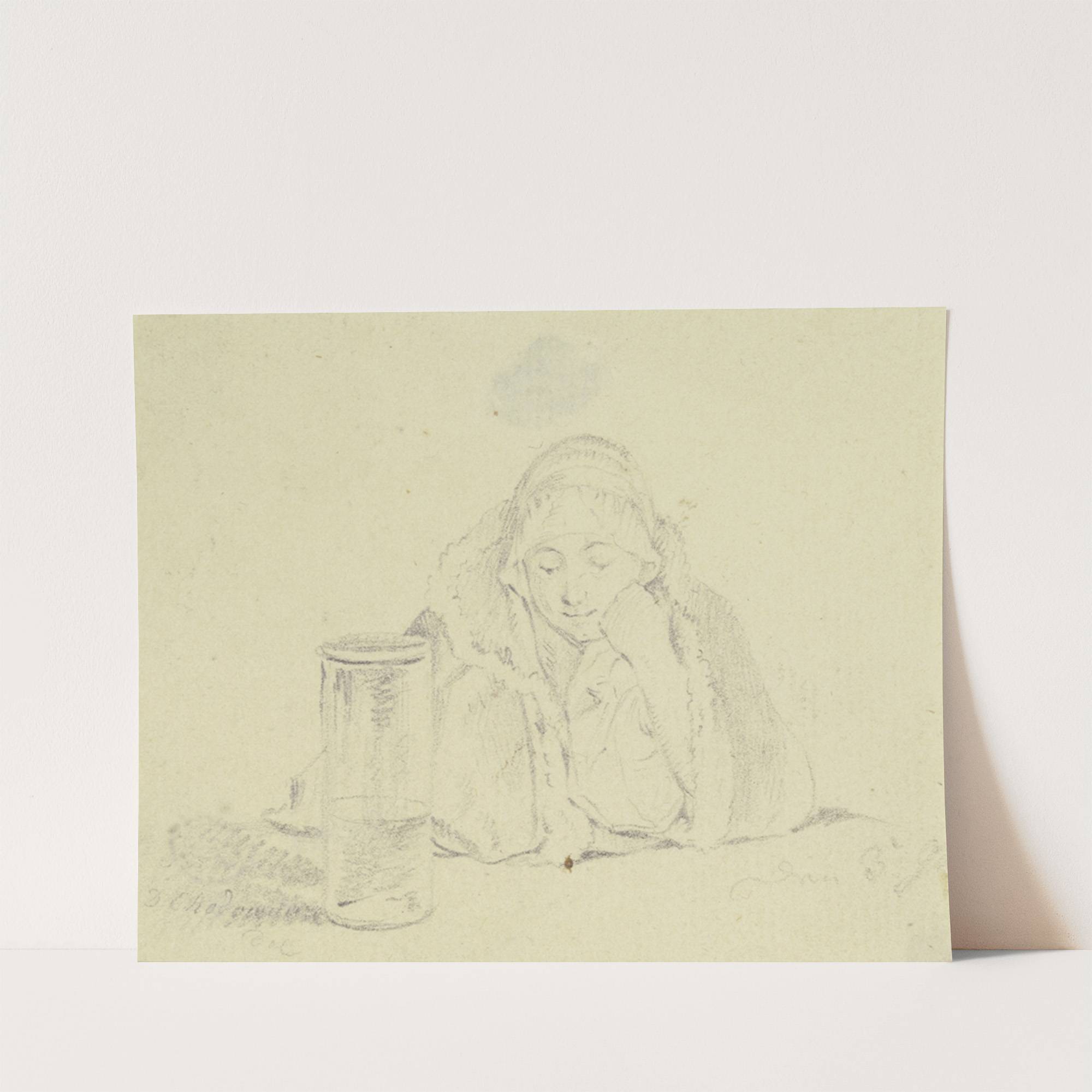 Am Tisch vor einem halb befüllten Glasgefäß sitzende Frau by Daniel Nikolaus Chodowiecki  - Wall Art Print
