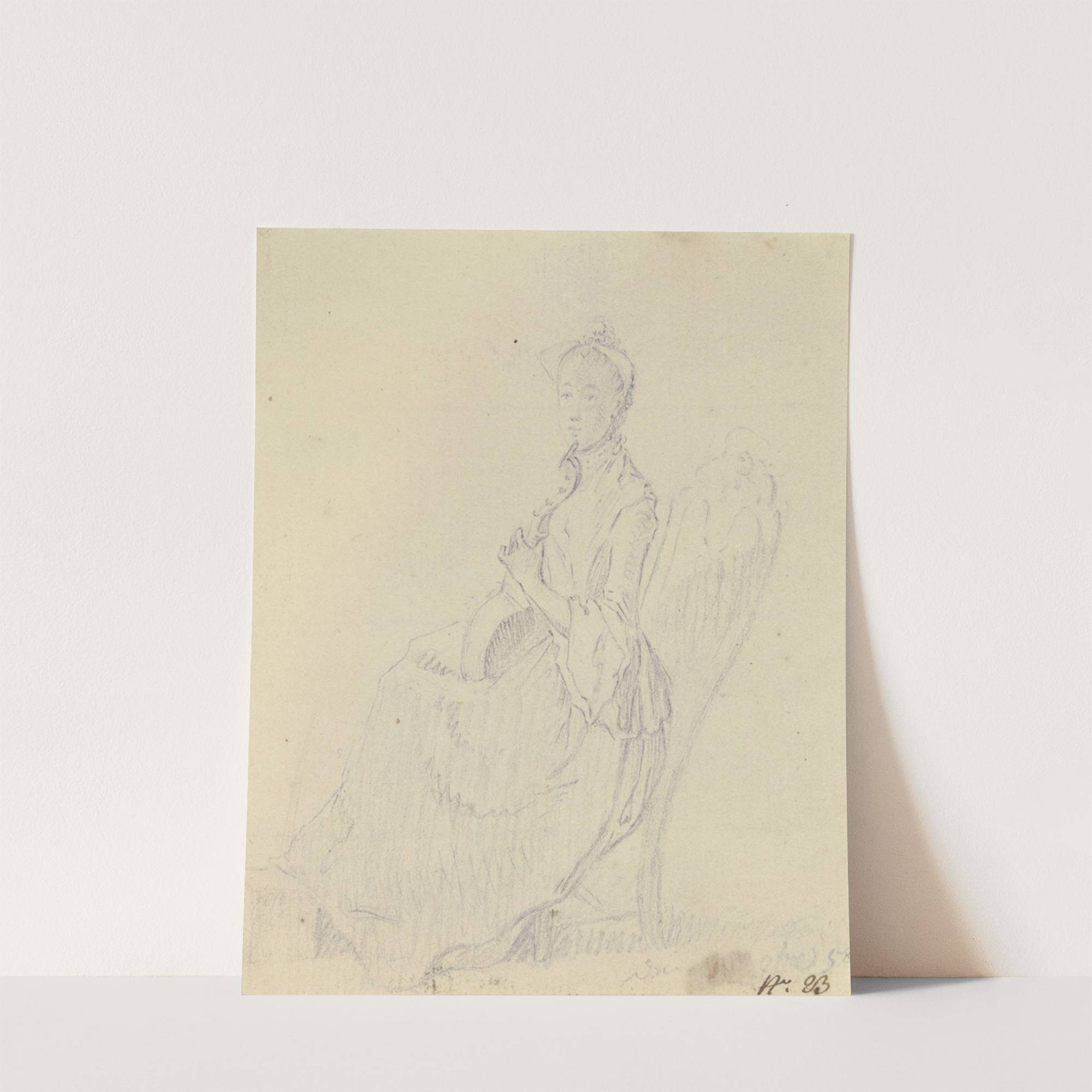 Guitarre spielende junge Frau auf einem Stuhl mit hoher Lehne, im Profil nach links by Daniel Nikolaus Chodowiecki  - Wall Art Print