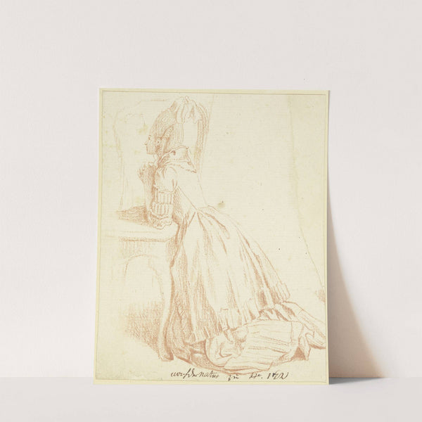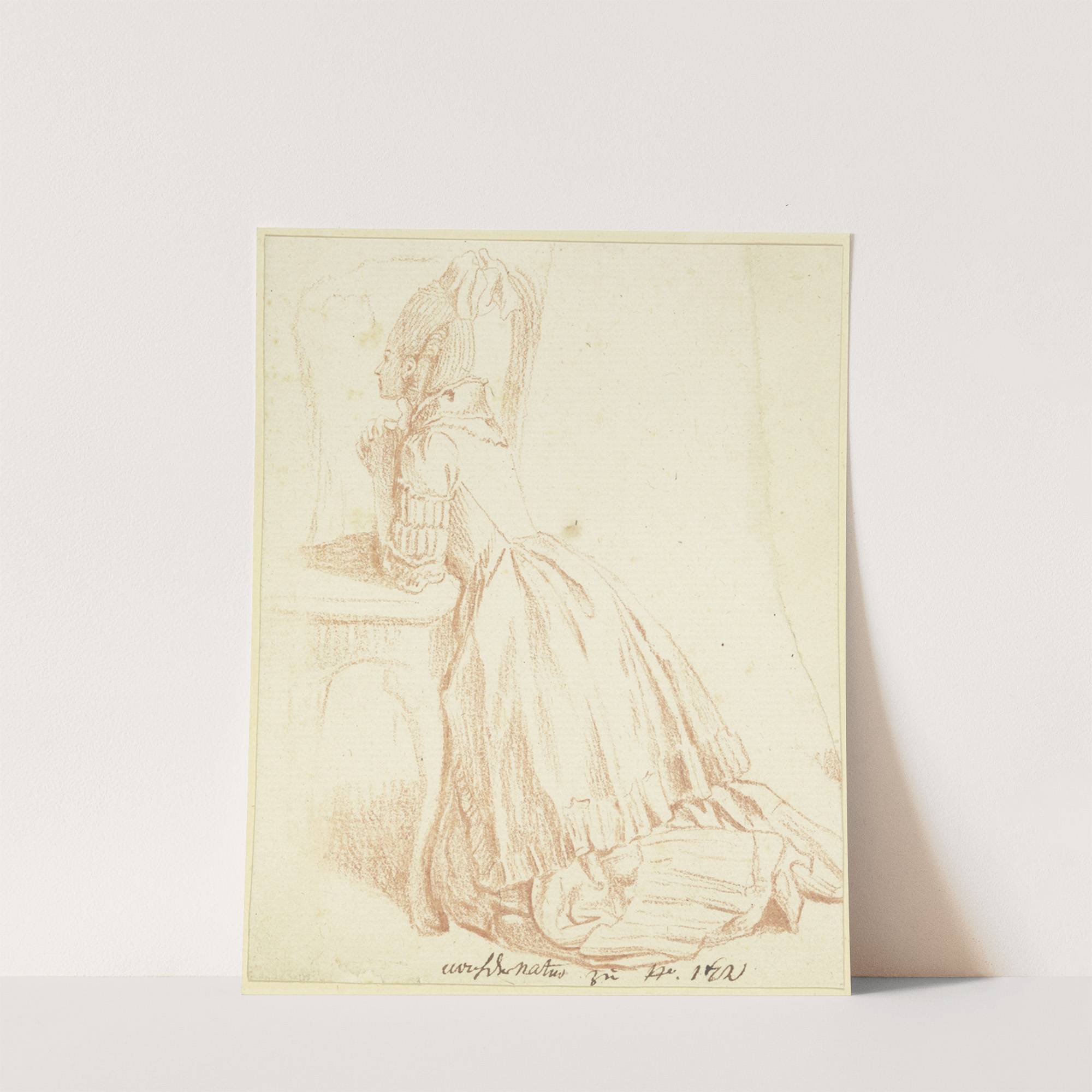 Kniende Dame im Profil nach links, die Ellbogen auf einen Stuhl gestützt, die Hände gefaltet by Daniel Nikolaus Chodowiecki  - Wall Art Print