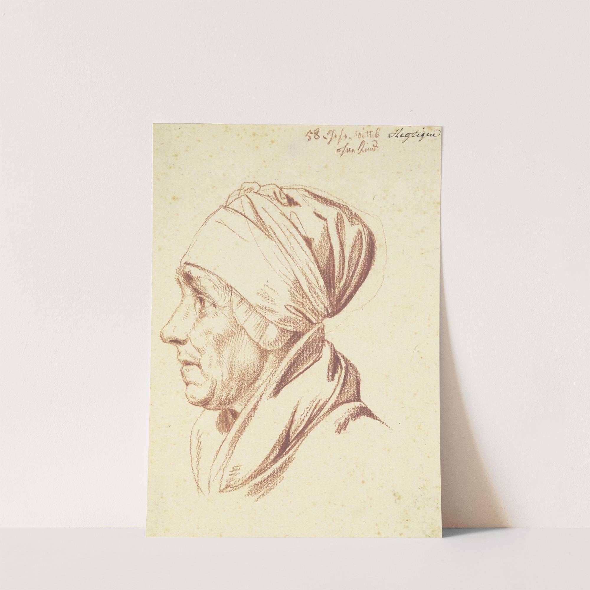 Kopf einer älteren Frau mit Kopftuch im Profil nach links by Daniel Nikolaus Chodowiecki - Wall Art Print