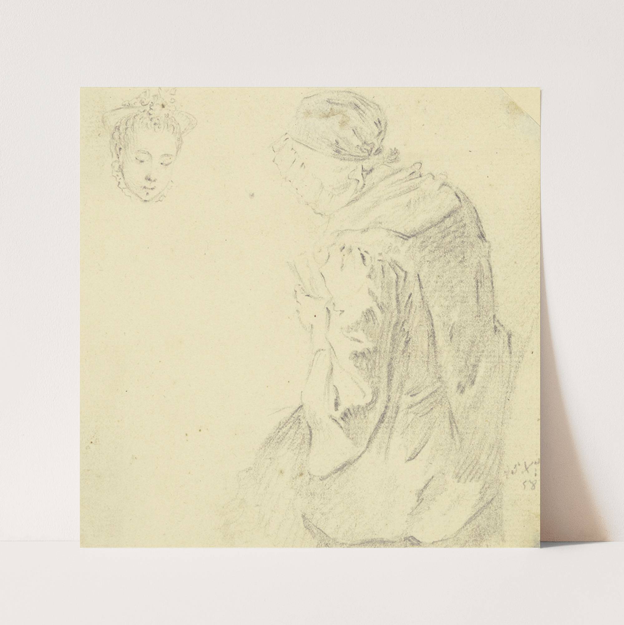 Sitzende Frau mit Haube, nach links gewandt, dreiviertel vom Rücken gesehen, mit Spielkarten in der Hand, links oben ein Mädchenkopf by Daniel Nikolaus Chodowiecki - Wall Art Print
