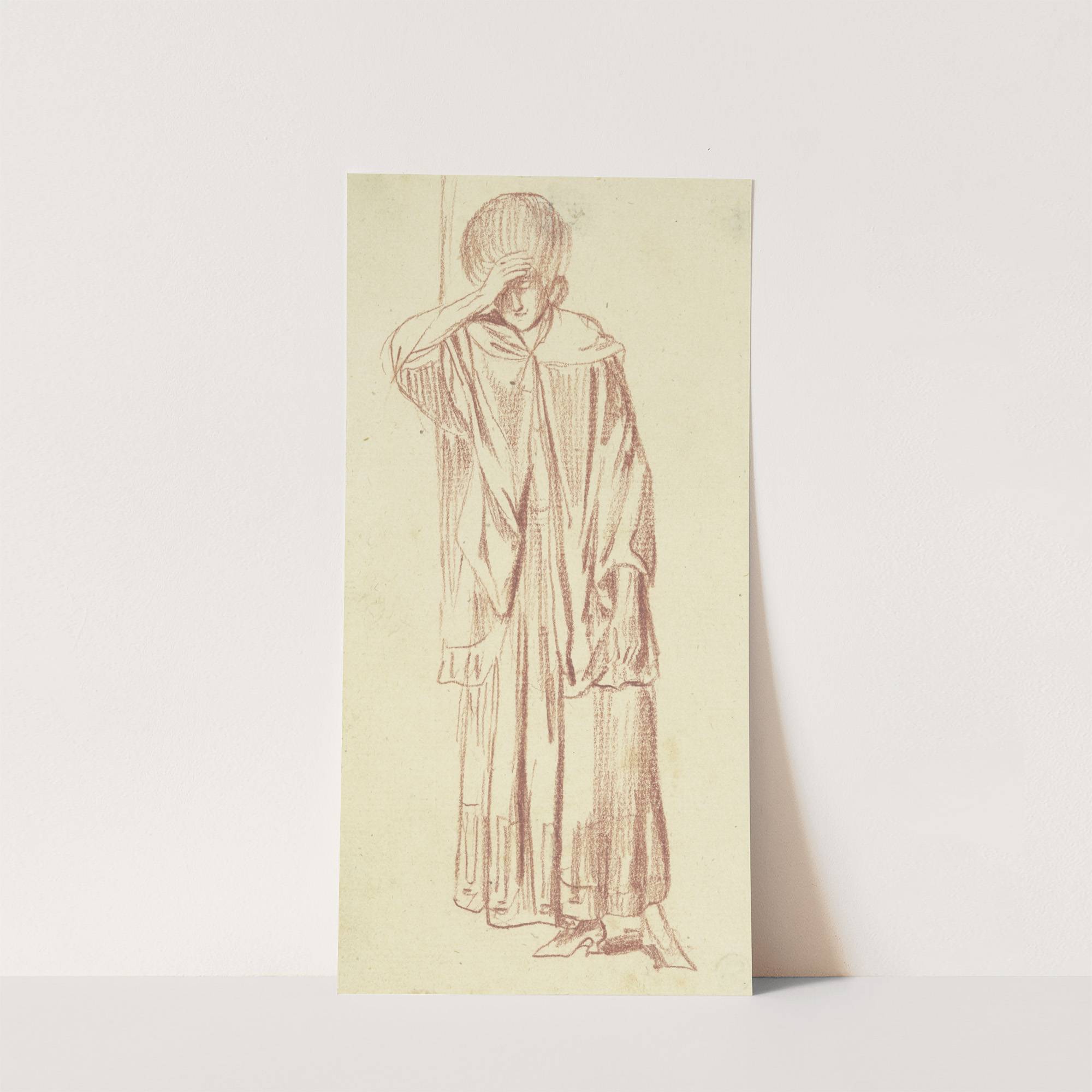 Stehende Frau von vorne gesehen, an einen Pfeiler gelehnt, die rechte Hand an die Stirn haltend by Daniel Nikolaus Chodowiecki - Wall Art Print