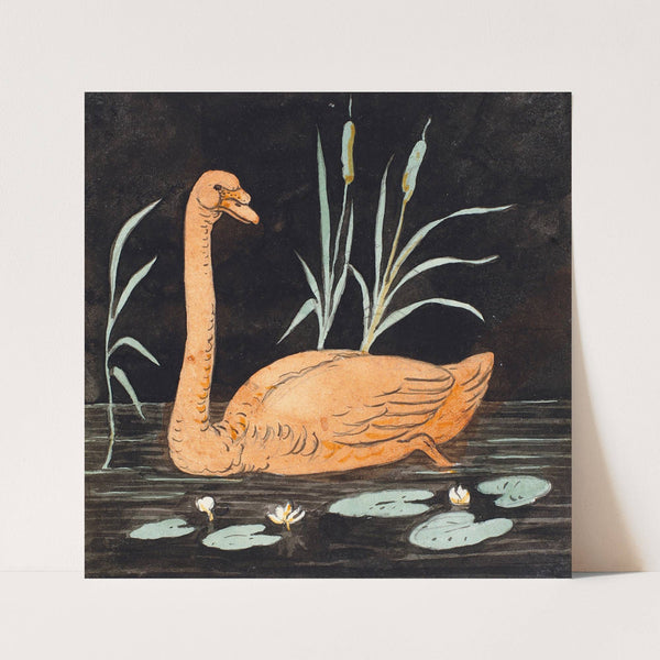 En svane på sort baggrund. Dekorativt udkast. by P. C. Skovgaard - Wall Art Print