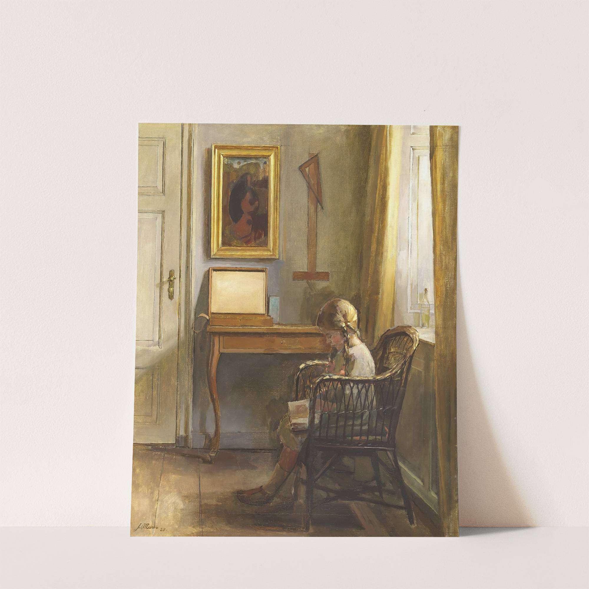 Interiør med læsende pige ved vindue by Johannes Ottesen - Wall Art Print