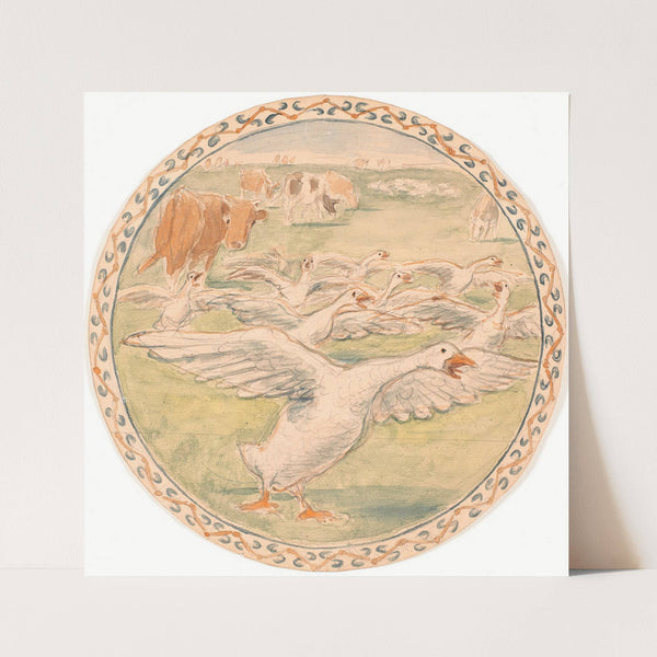 Køer og skræppende høns (udkast til keramisk fad) (1893) by Theodor Philipsen - Wall Art Print