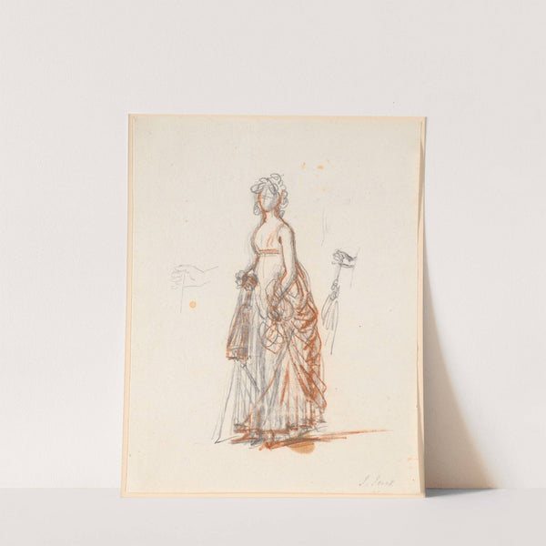 Studie til det Rybergske familiebillede; Fru Rybergs figur og højre hånd med en parasol by Jens Juel - Wall Art Print