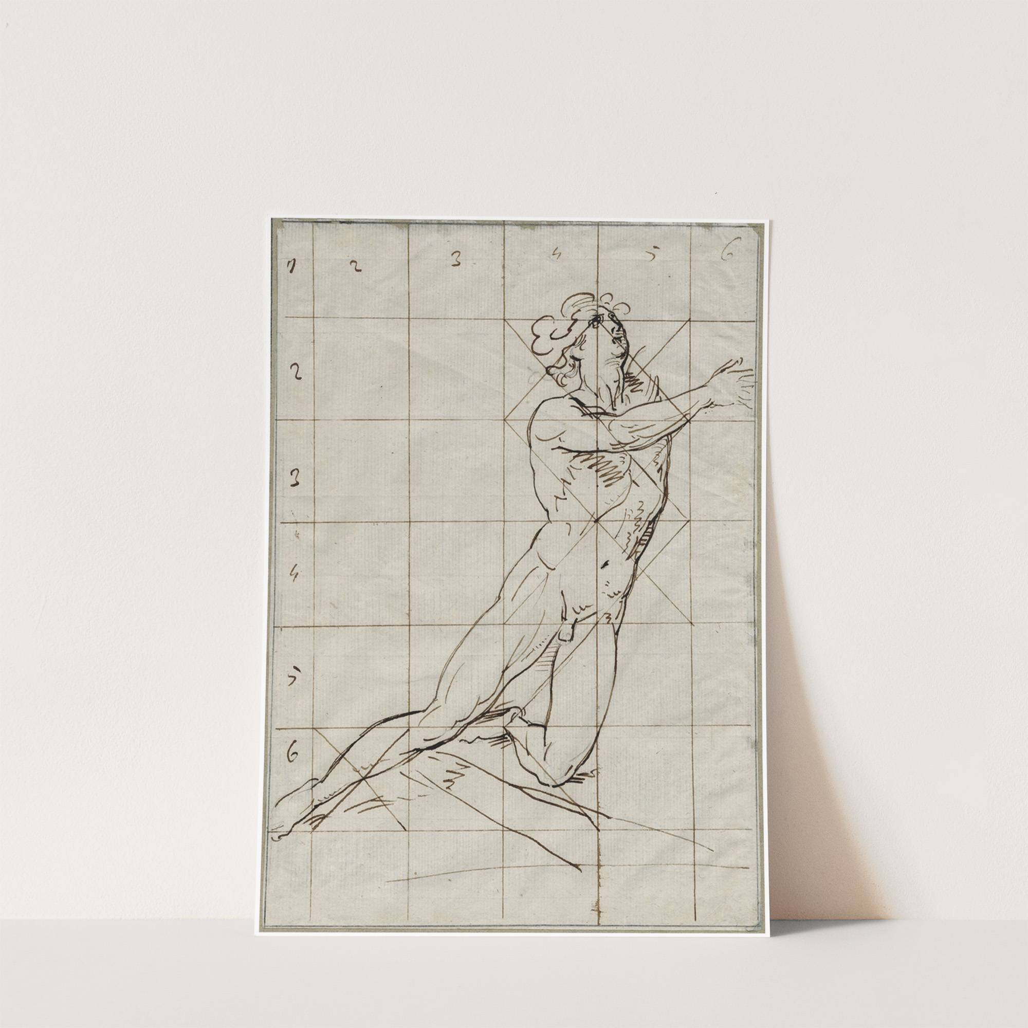 Half knielende naakte man by David Humbert de Superville  - Wall Art Print