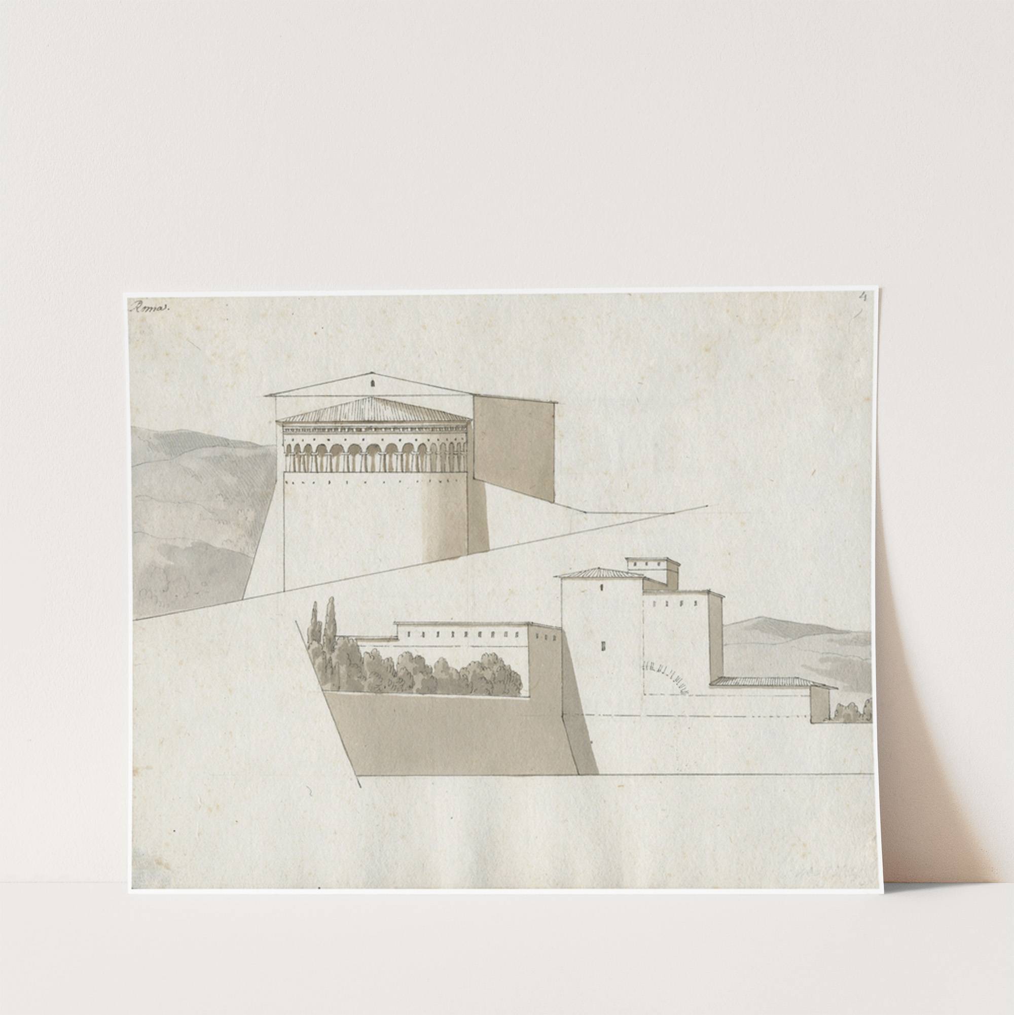 Rome: twee gezichten op anonieme gebouwen by David Humbert de Superville  - Wall Art Print