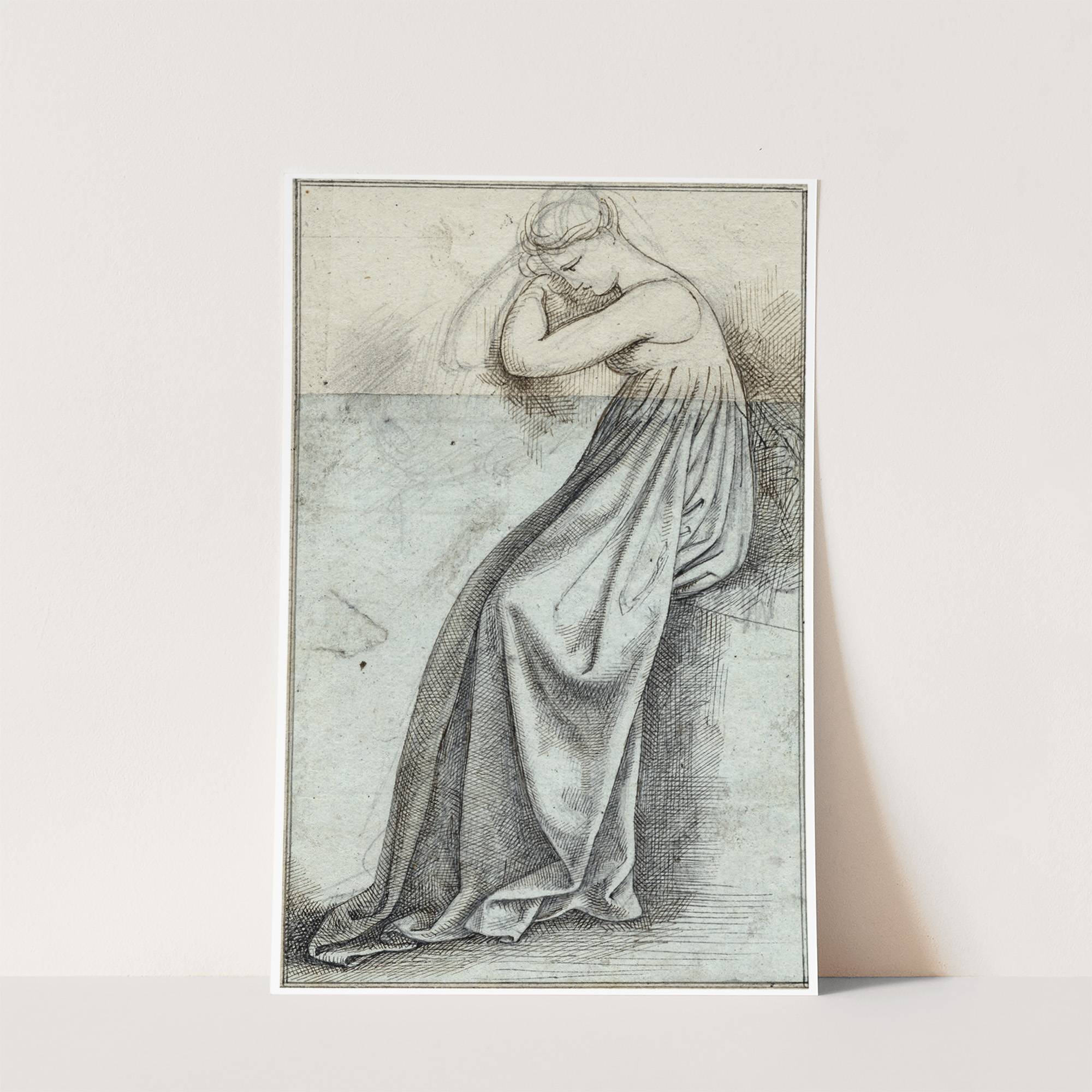 Zittende vrouw, haar hoofd met de armen ondersteunend by David Humbert de Superville  - Wall Art Print